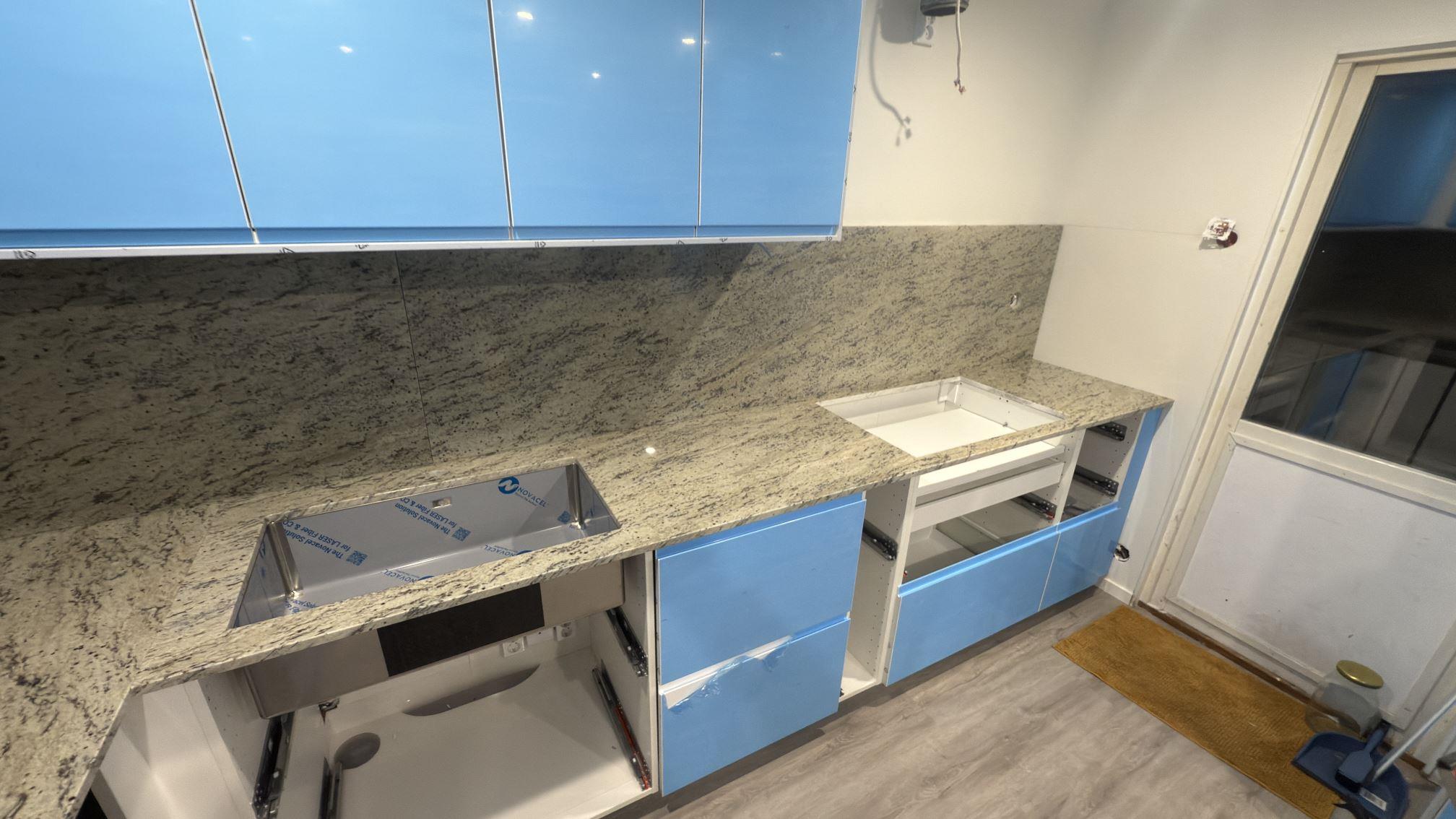 Nytt projekt slutfört i Märsta. Montering. Mätning. Sten: Antique White - 20mm Polerad.