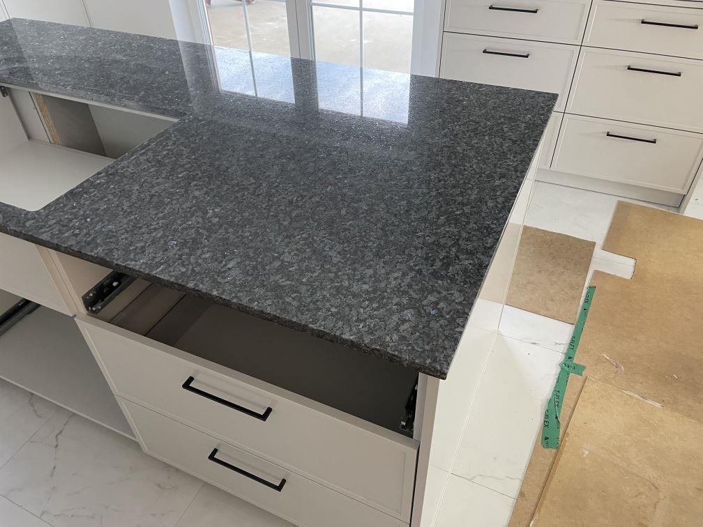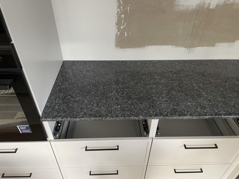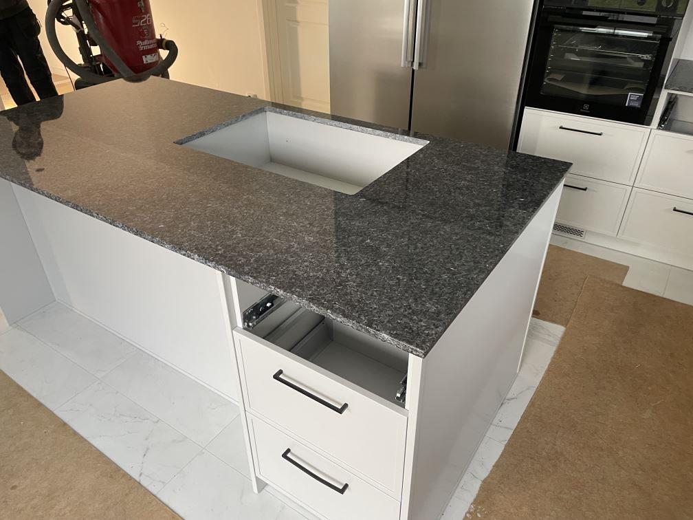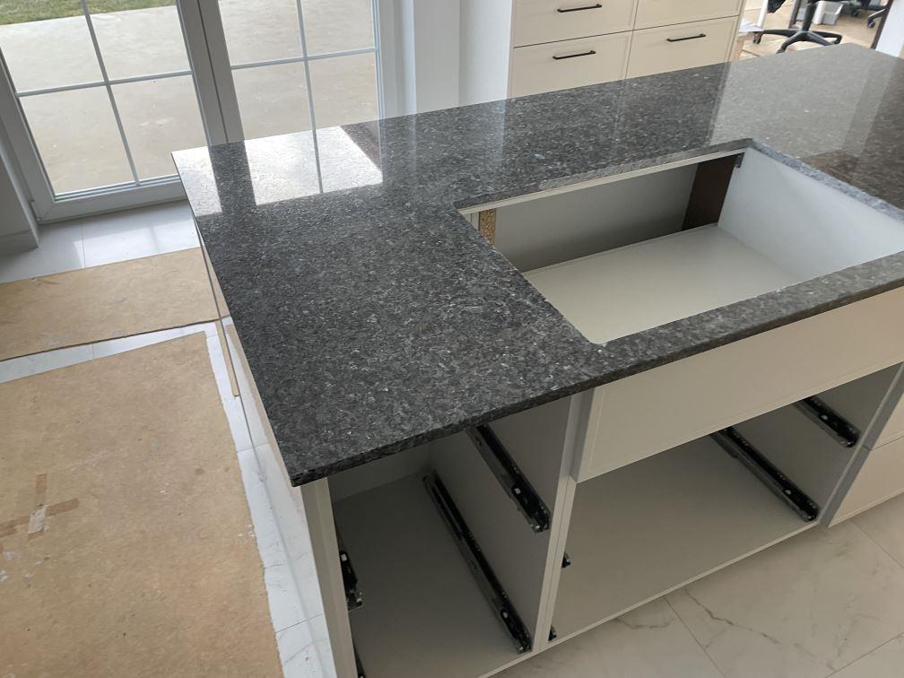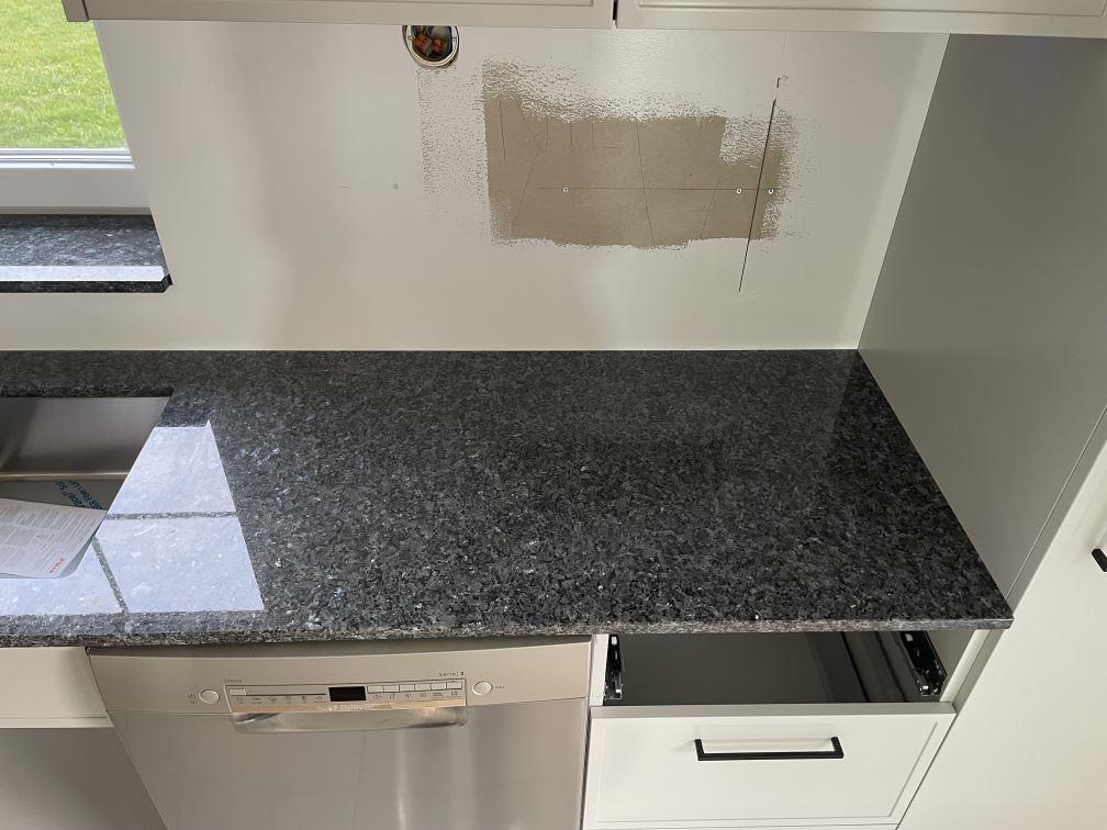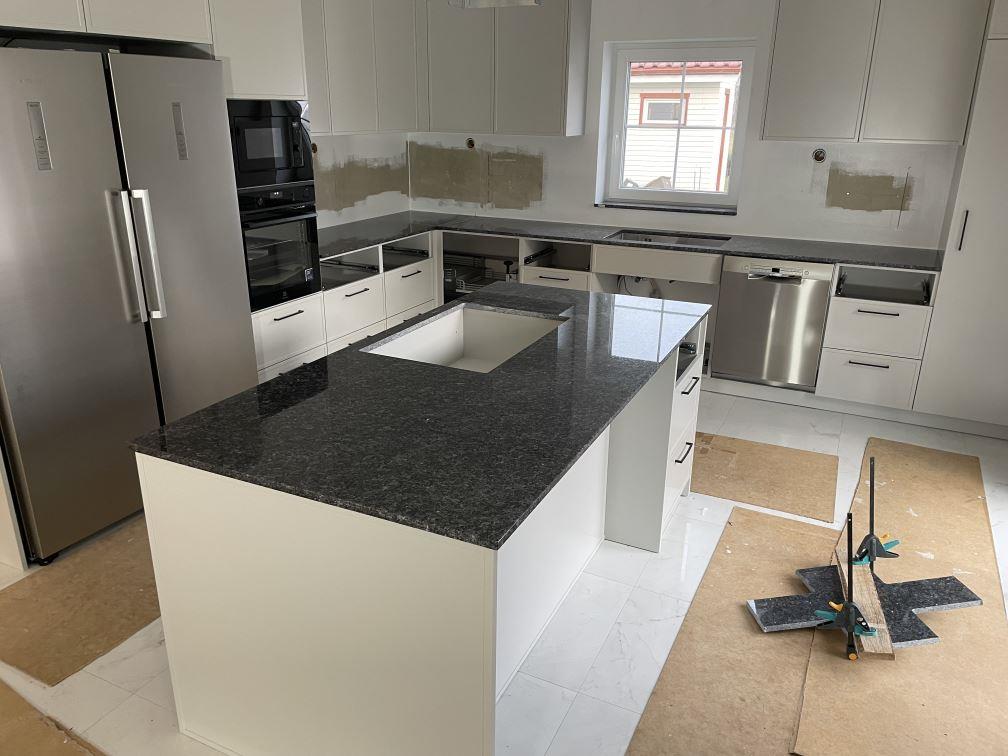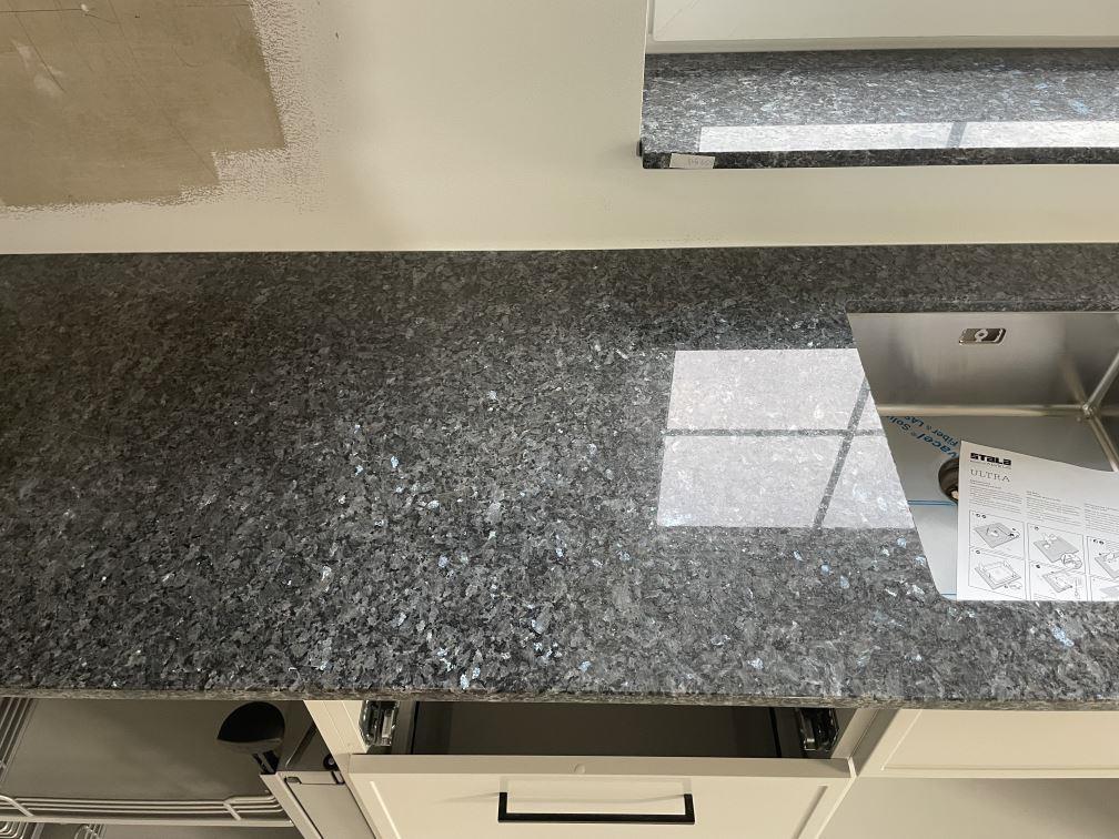 Nytt projekt slutfört i Sölvesborg. Montering. Mätning. Sten: Blue Pearl - 20mm Polerad.