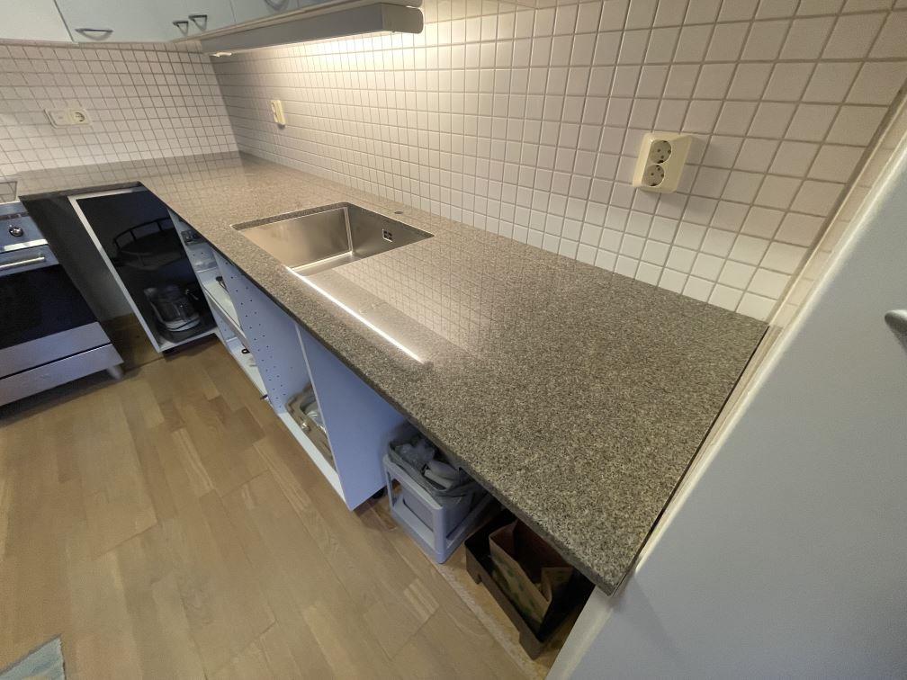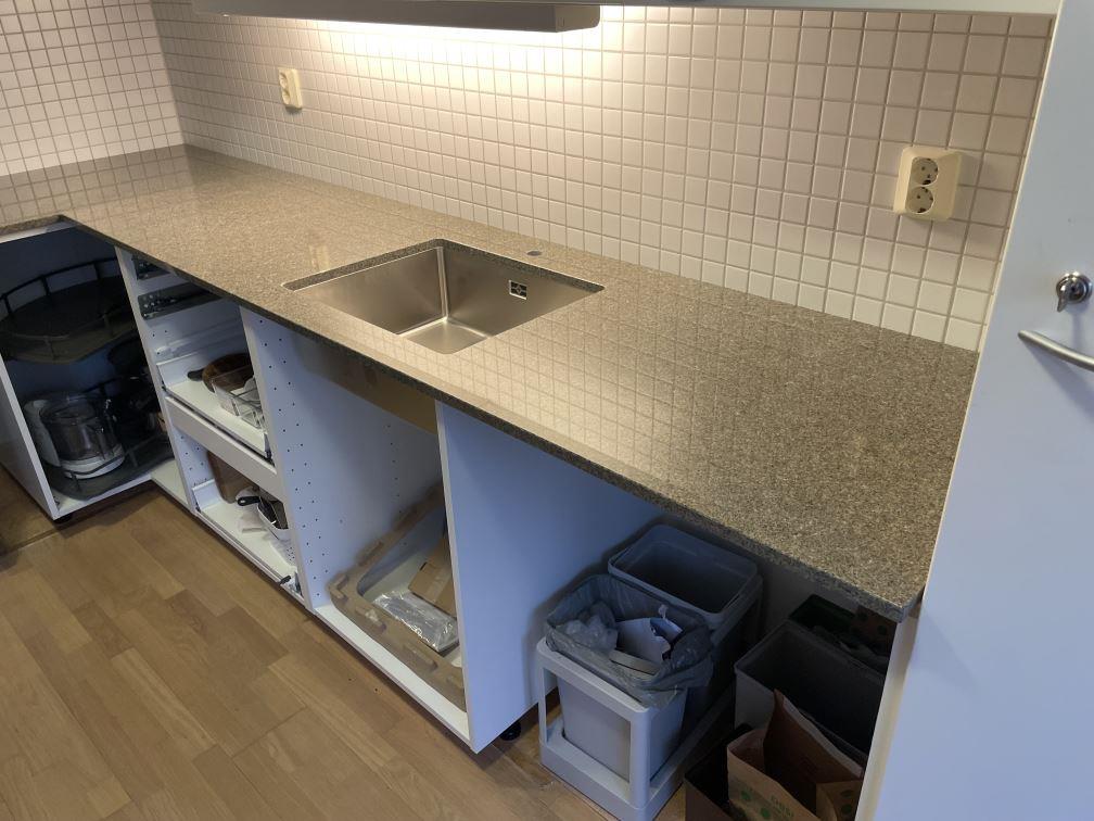 Nytt projekt slutfört i Stockholm. Montering. Mätning. Sten: Bohus Grå - 20mm Polerad.
