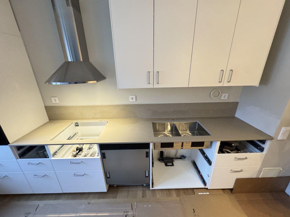 Nytt projekt slutfört i Malmö. Montering. Mätning. Sten: Caesarstone Shitake - 20mm Matt,Caesarstone Shitake - 12mm Matt.