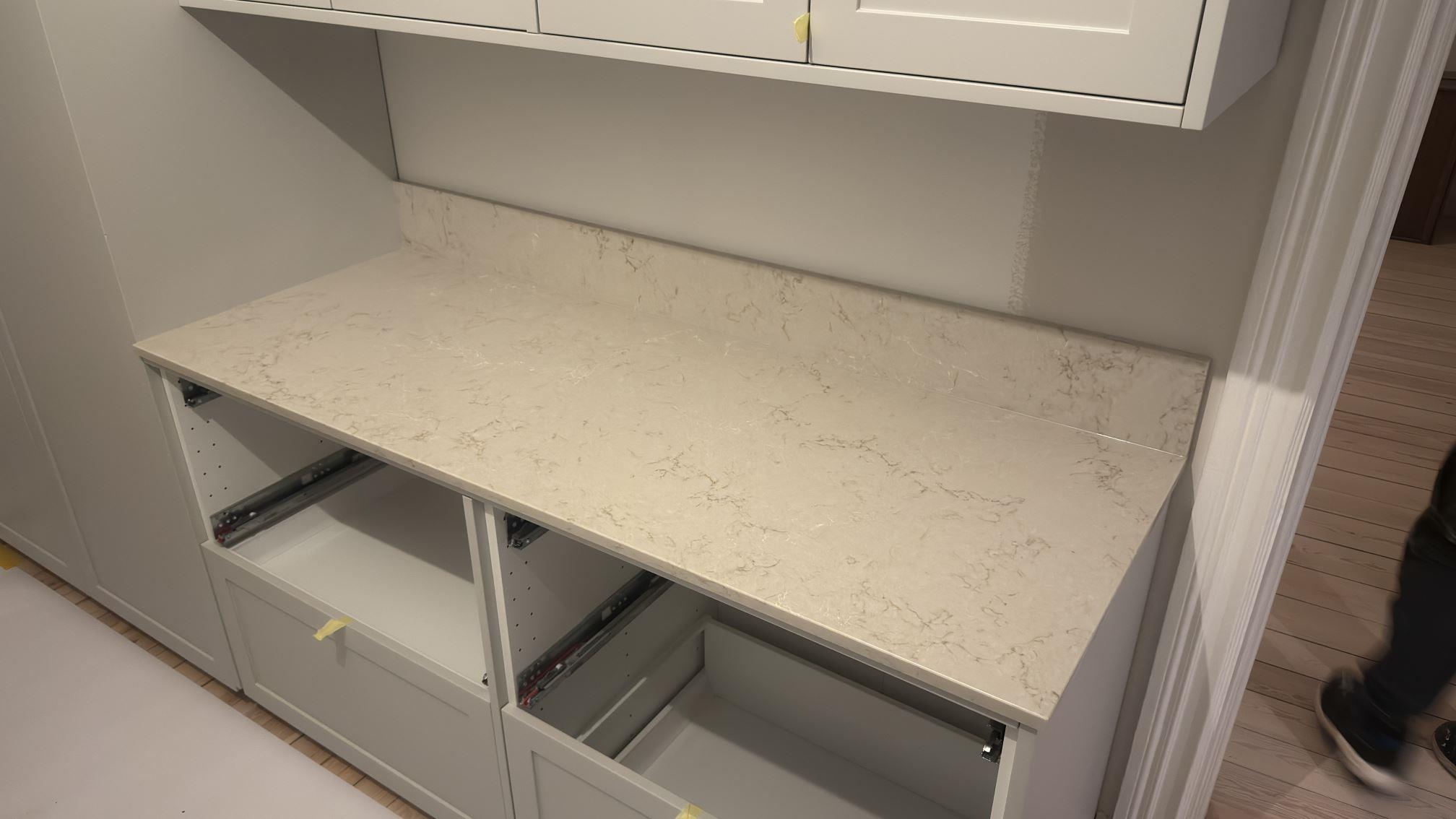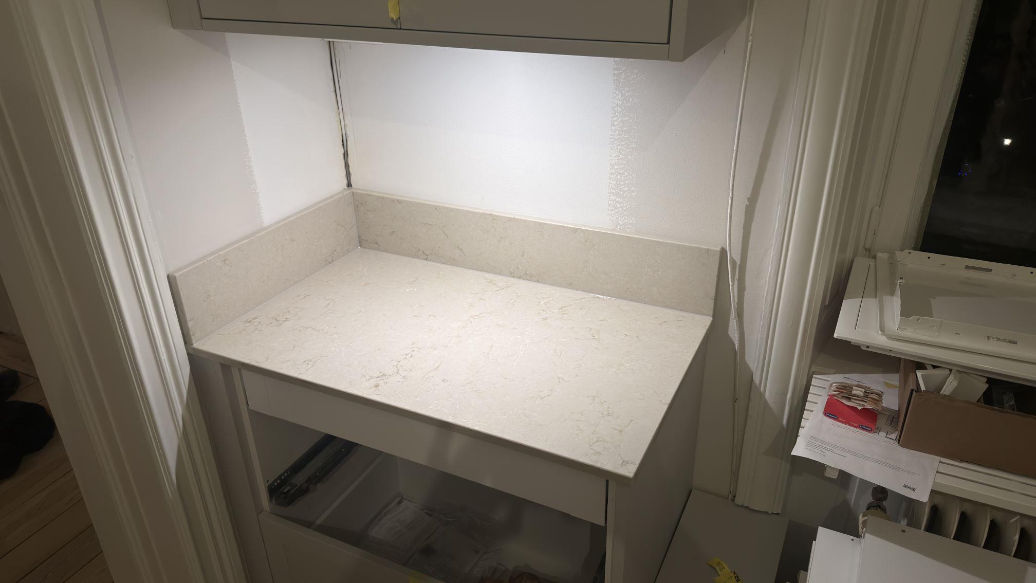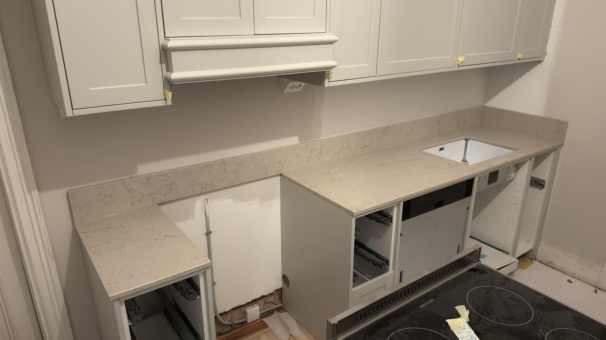Nytt projekt slutfört i stockholm. Montering. Mätning. Sten: Caesarstone Taj Royale 5212 - 20mm Polerad.