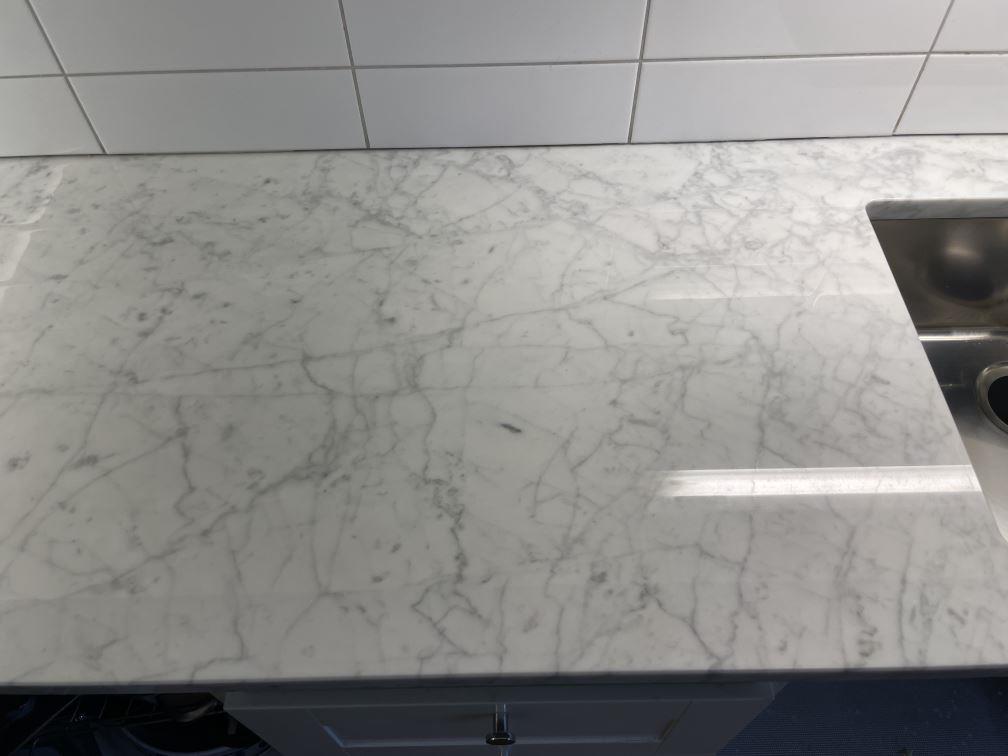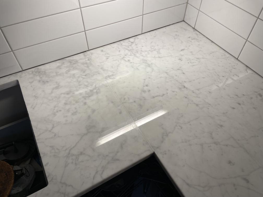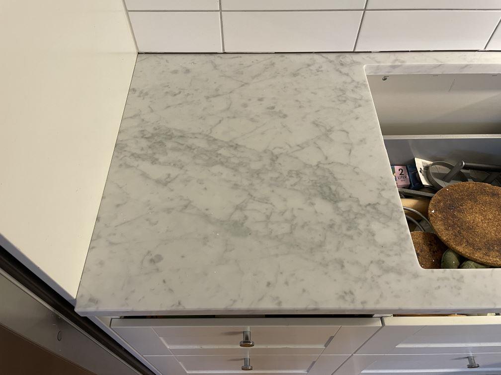 Nytt projekt slutfört i Bromma. Montering. Mätning. Sten: Carrara C - 30mm Polerad.