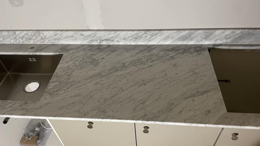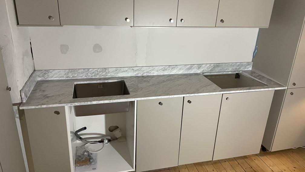Nytt projekt slutfört i Göteborg. Montering. Mätning. Sten: Carrara C - 20mm Matt.