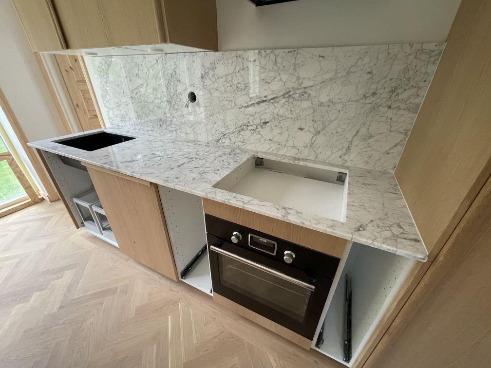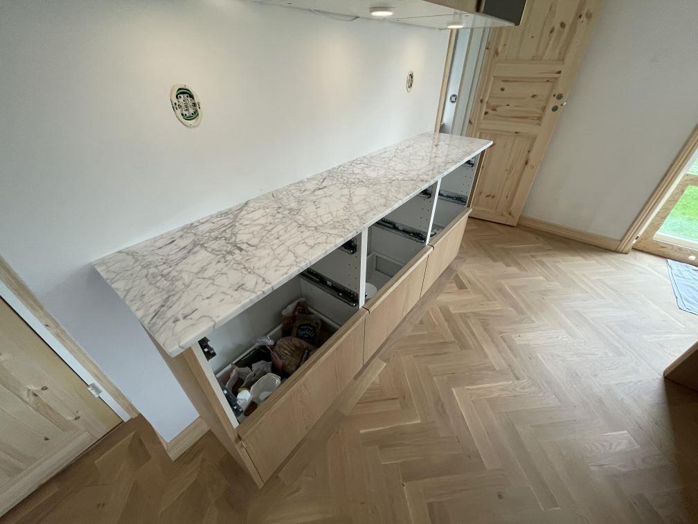 Nytt projekt slutfört i Hägersten. Montering. Mätning. Sten: Carrara C - 20mm Polerad.