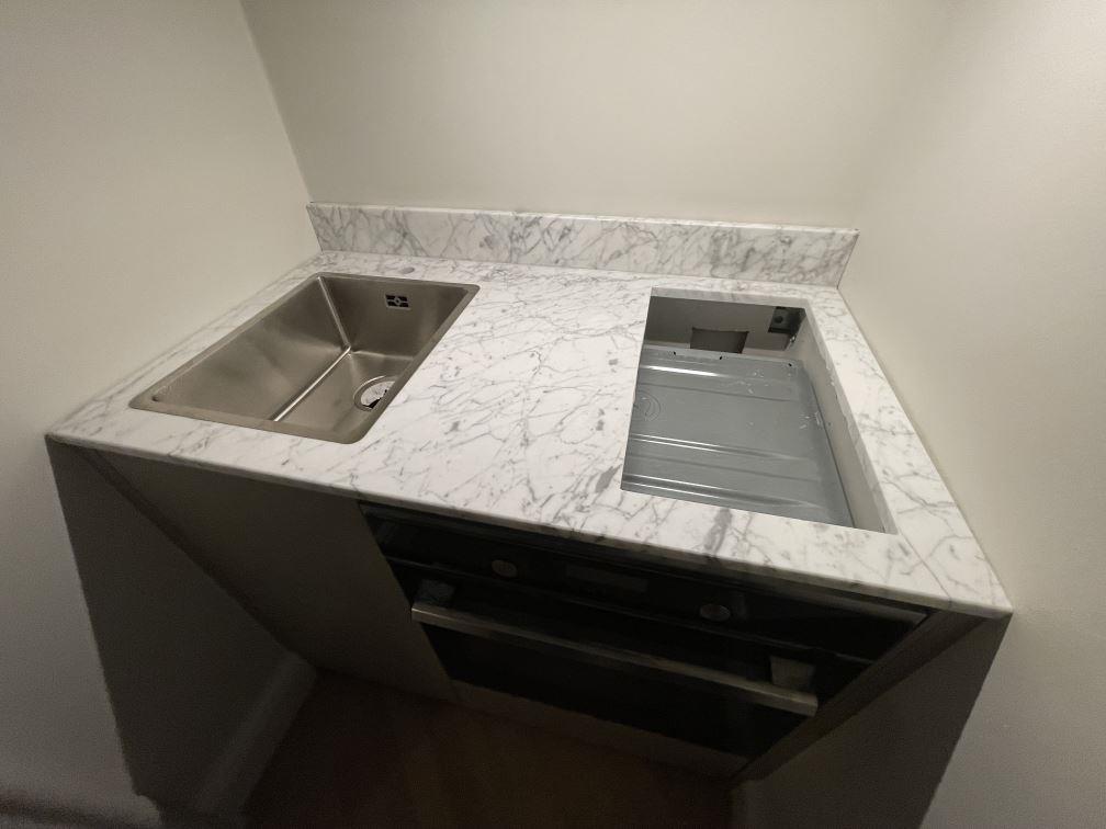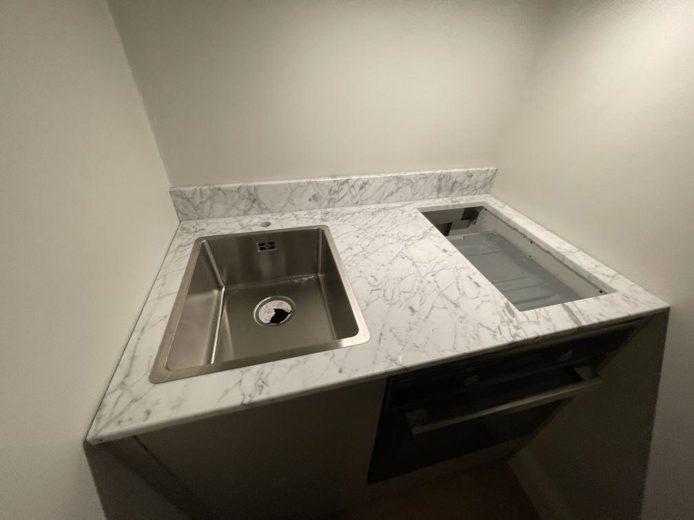 Nytt projekt slutfört i Stockholm. Montering. Mätning. Sten: Carrara C - 20mm Polerad.
