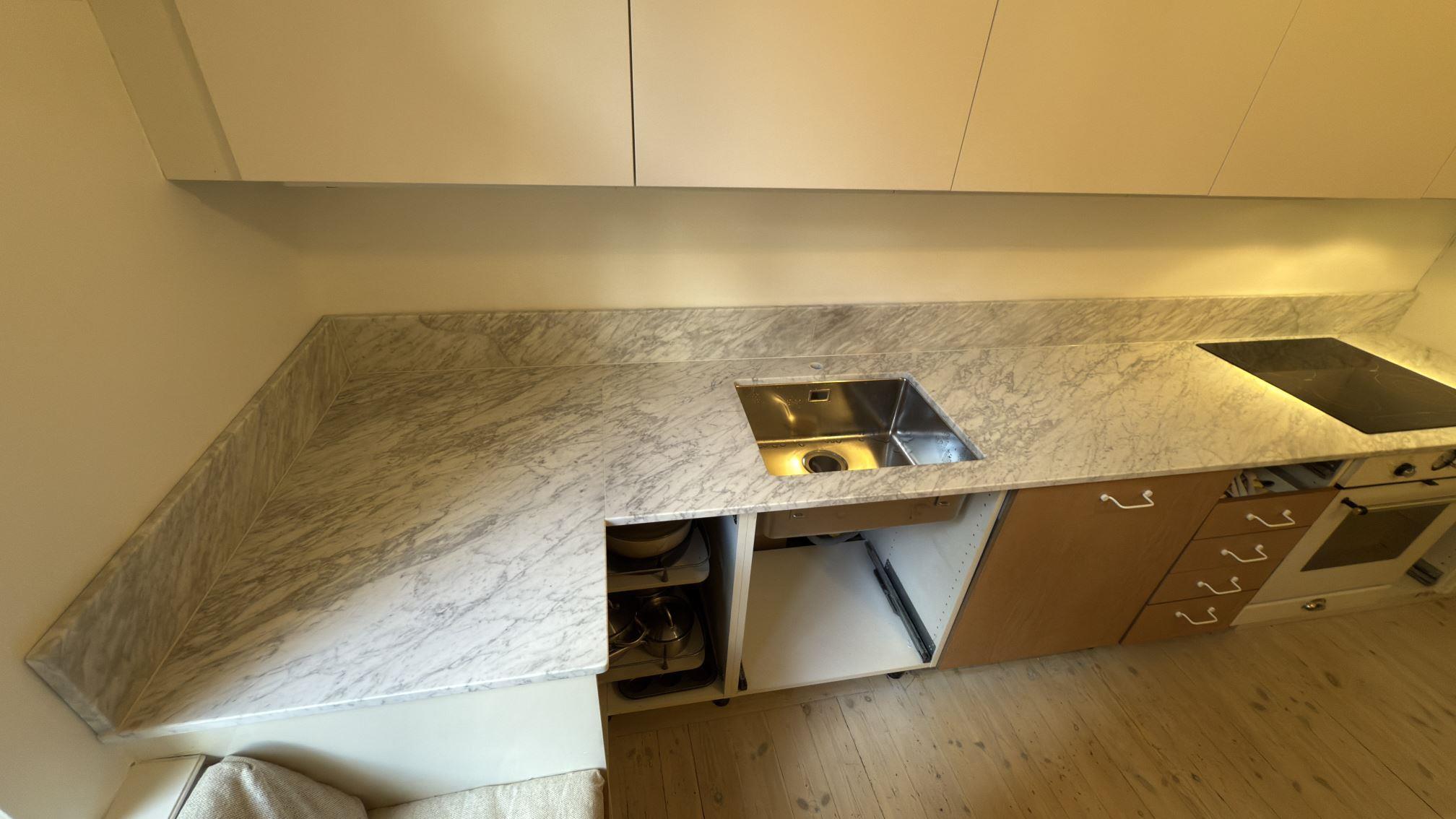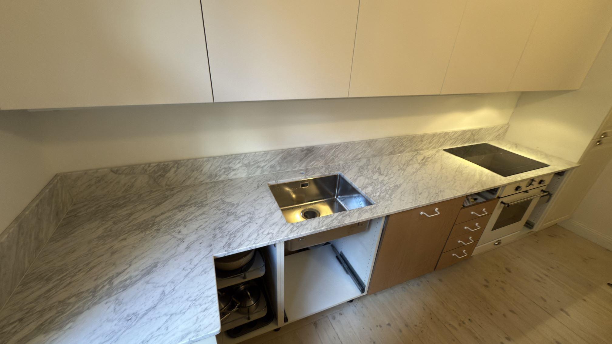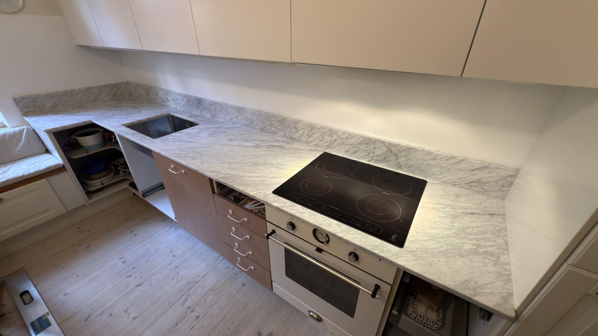 Nytt projekt slutfört i Stockholm. Montering. Mätning. Sten: Carrara C - 20mm Matt.