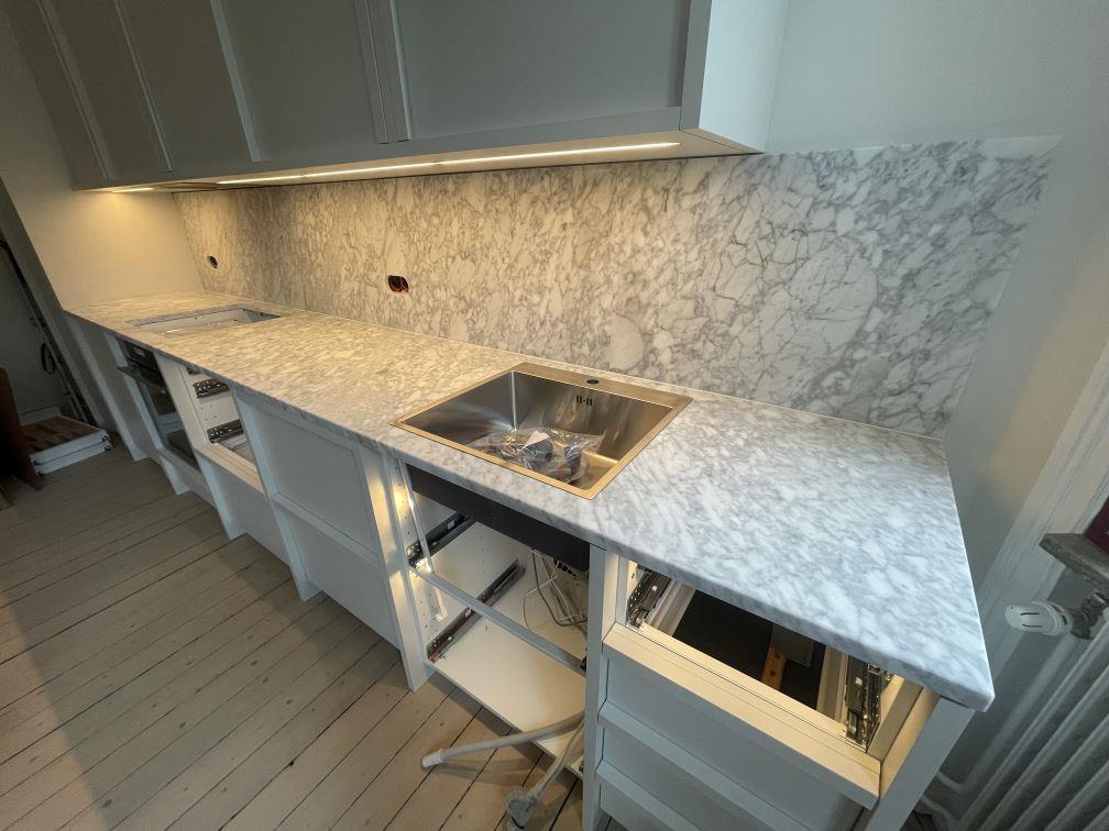 Nytt projekt slutfört i Stockholm. Montering. Mätning. Sten: Carrara C - 20mm Matt,Carrara C - 30mm Matt.