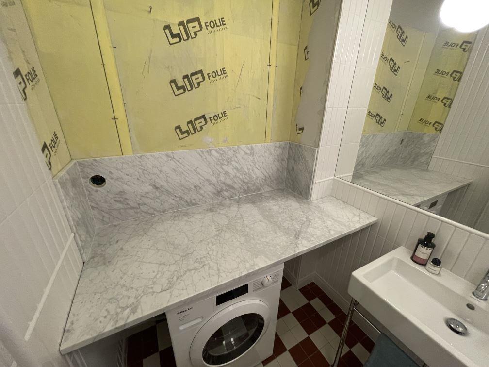 Nytt projekt slutfört i Stockholm. Montering. Mätning. Sten: Carrara C - 30mm Matt,Carrara C - 20mm Matt,Carrara C - 20mm Polerad.