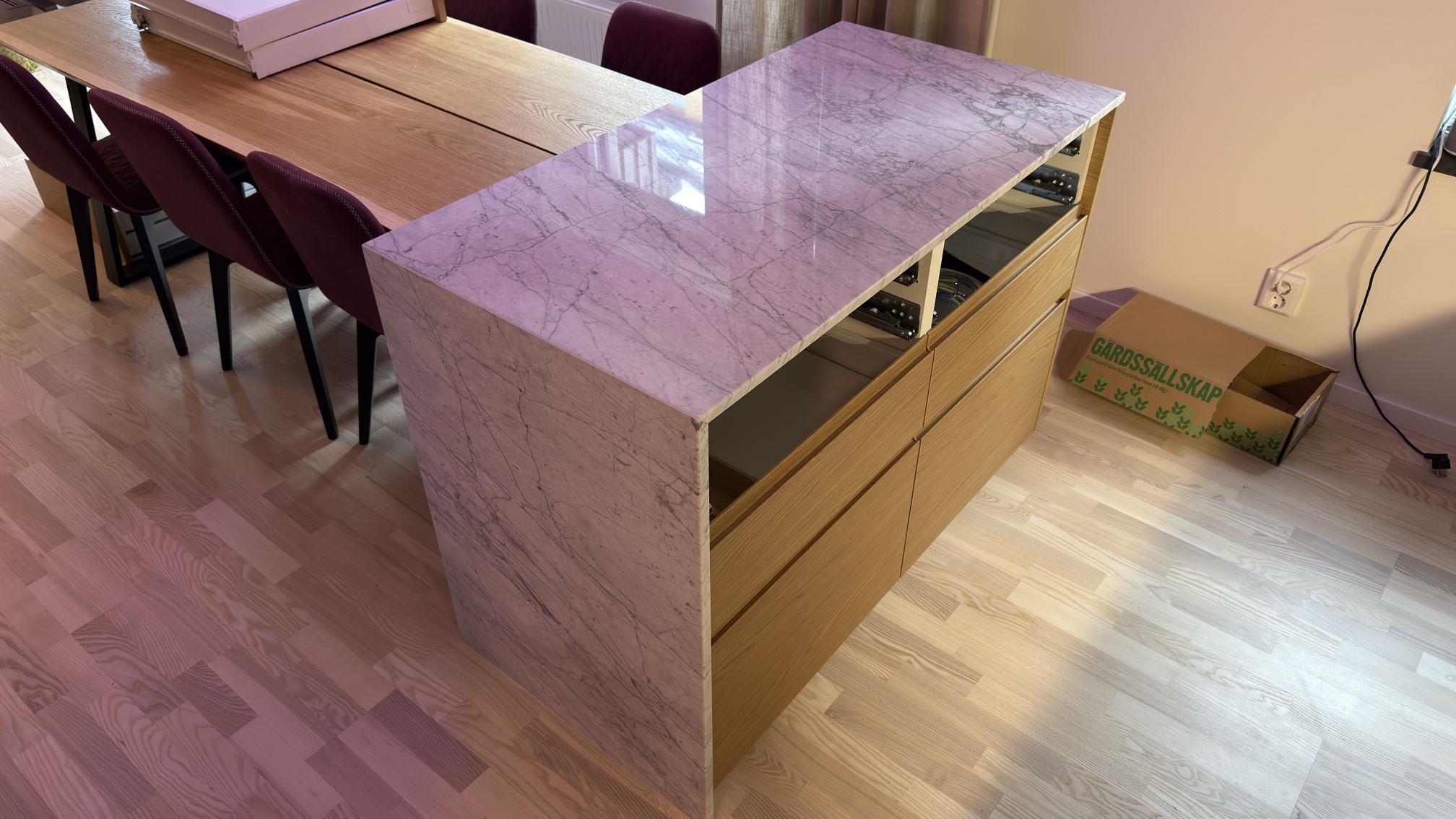 Nytt projekt slutfört i STOCKHOLM. Montering. Mätning. Sten: Carrara C - 20mm Polerad.
