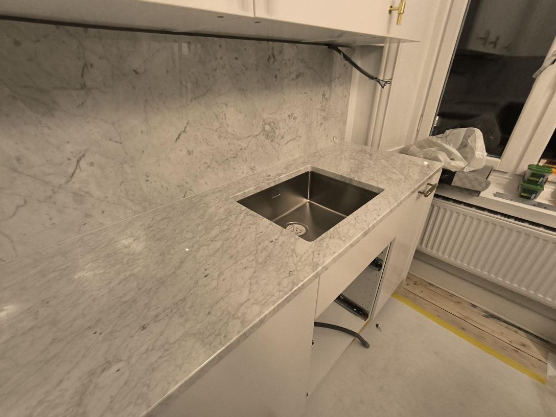 Nytt projekt slutfört i Stockholm. Montering. Mätning. Sten: Carrara C - 20mm Polerad,Carrara C - 30mm Polerad.