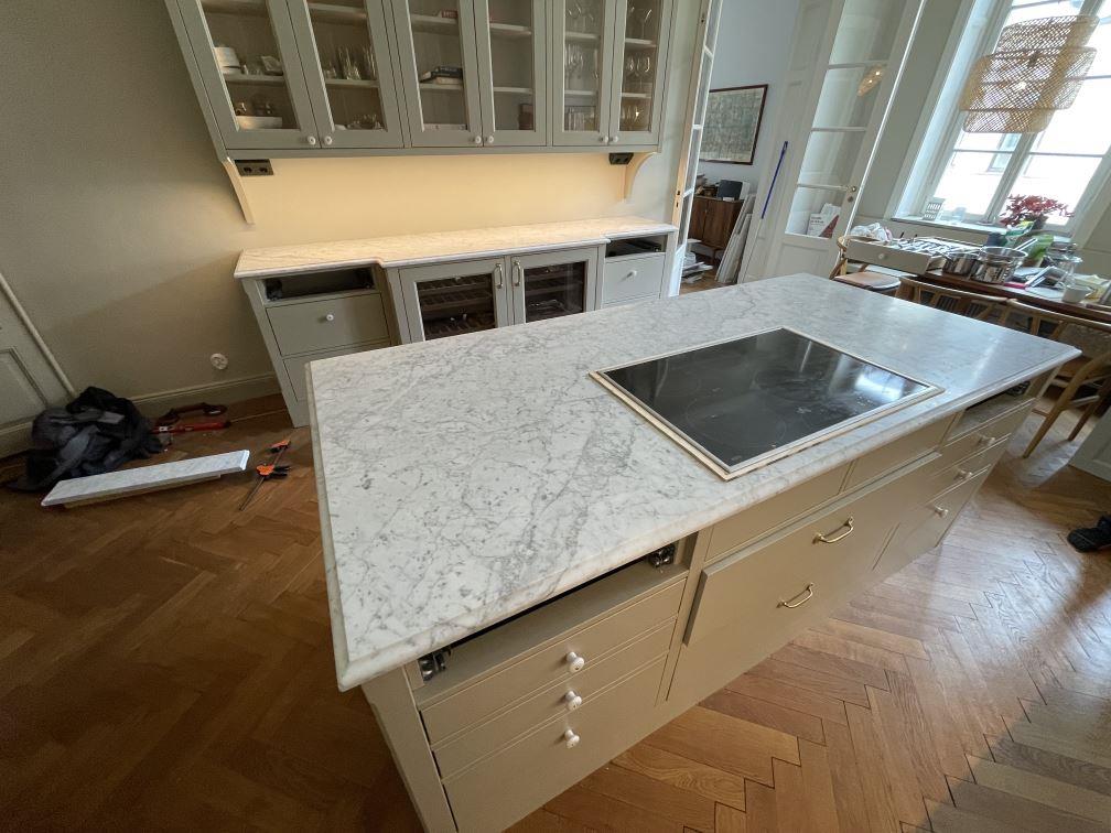 Nytt projekt slutfört i Stockholm. Montering. Mätning. Sten: Carrara C - 20mm Matt,Carrara C - 30mm Matt.