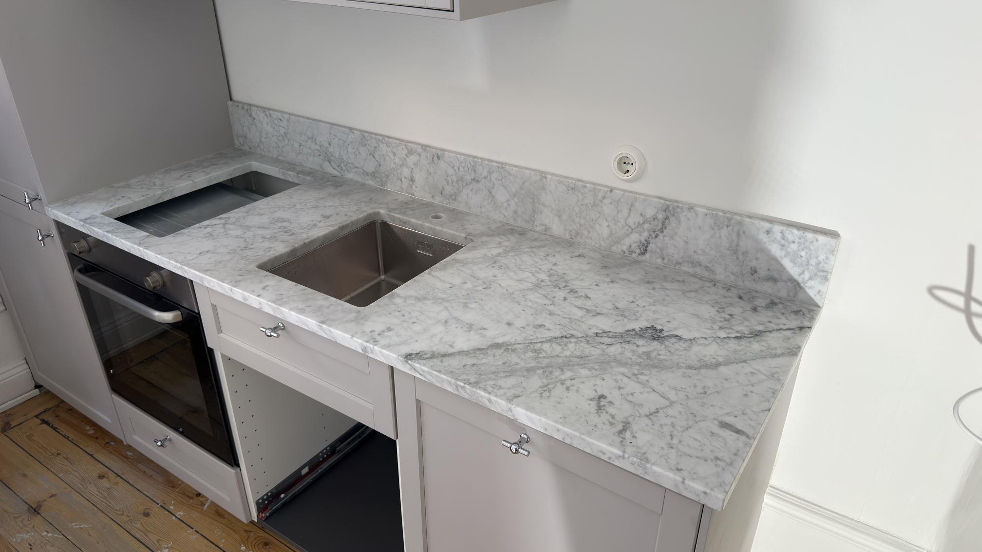 Nytt projekt slutfört i Stockholm. Montering. Mätning. Sten: Carrara C - 30mm Matt,Carrara C - 20mm Matt.