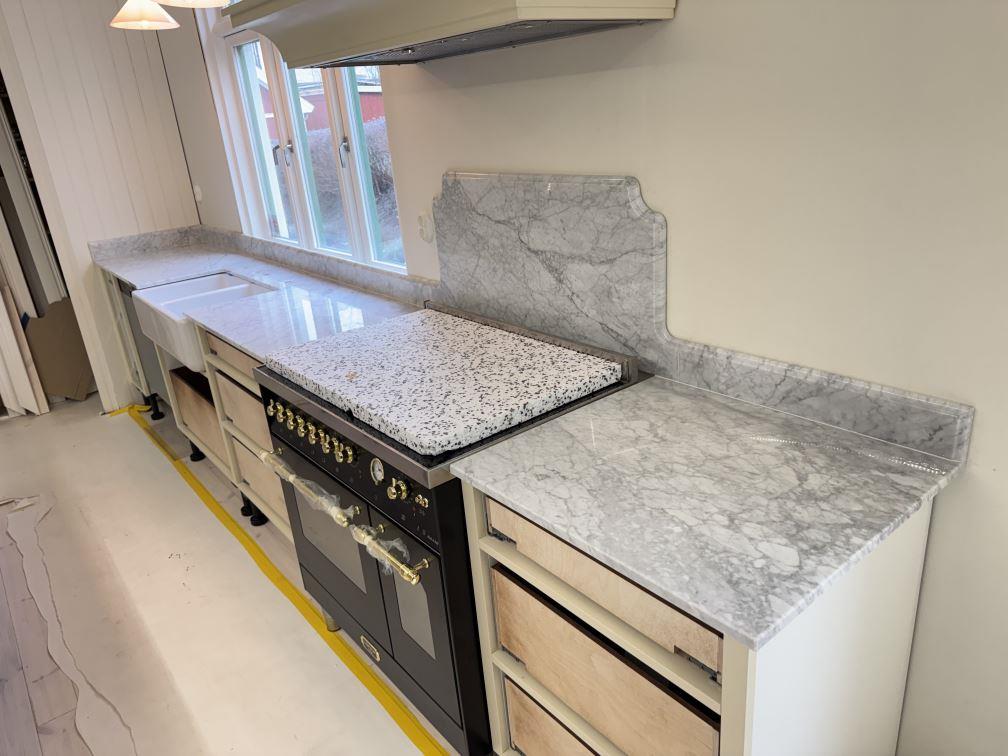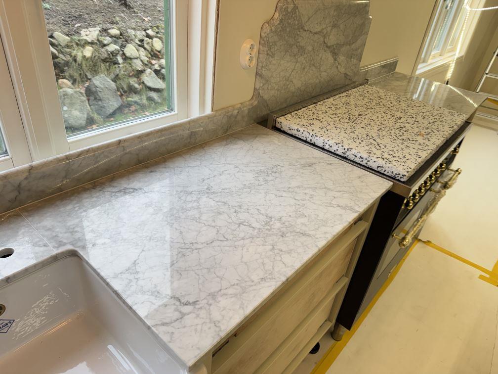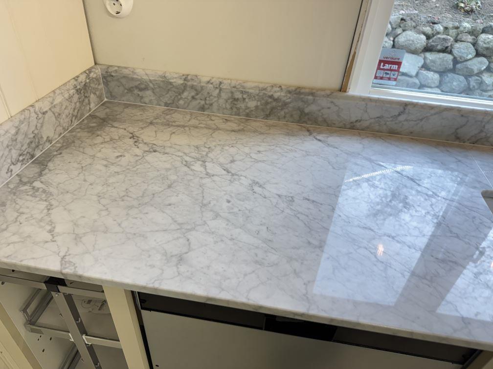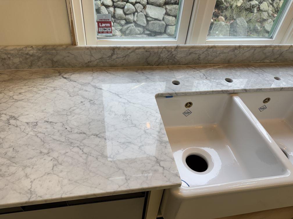Nytt projekt slutfört i Tenhult. Montering. Mätning. Sten: Carrara C - 20mm Polerad.