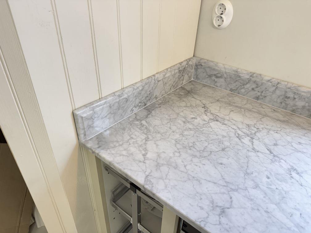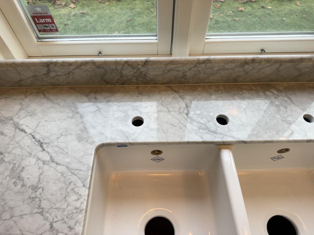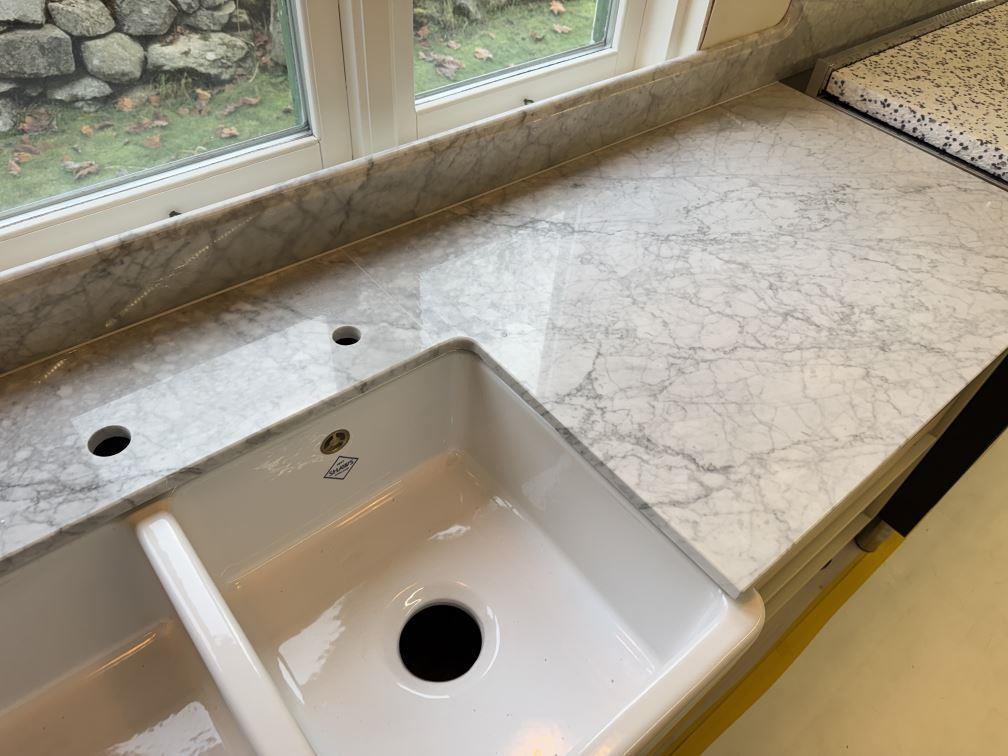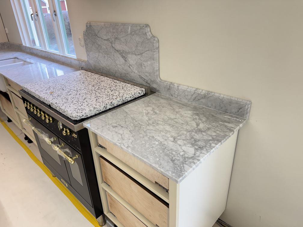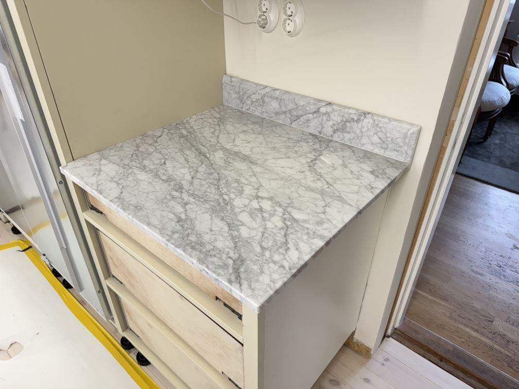Nytt projekt slutfört i Tenhult. Montering. Mätning. Sten: Carrara C - 20mm Polerad.