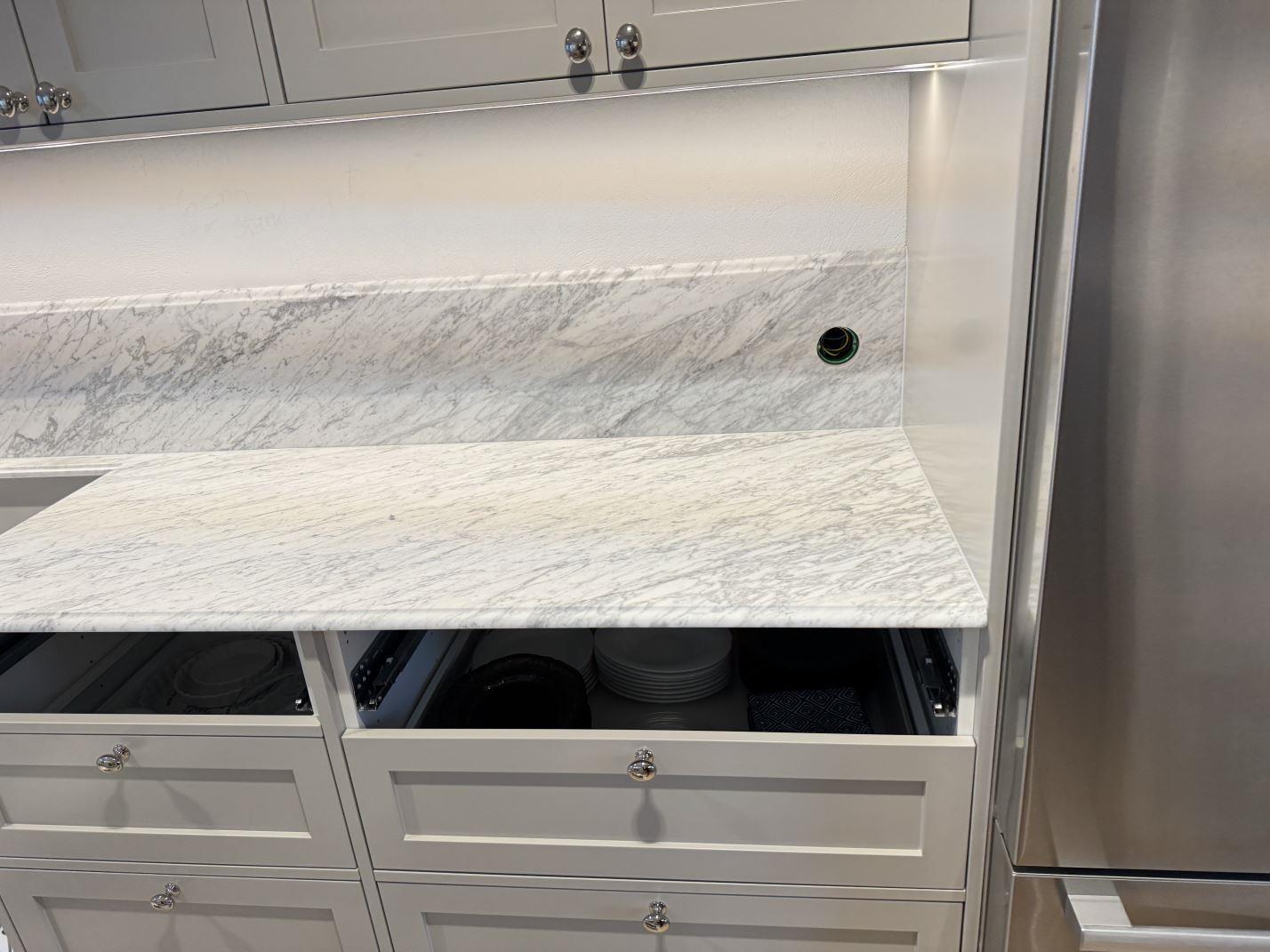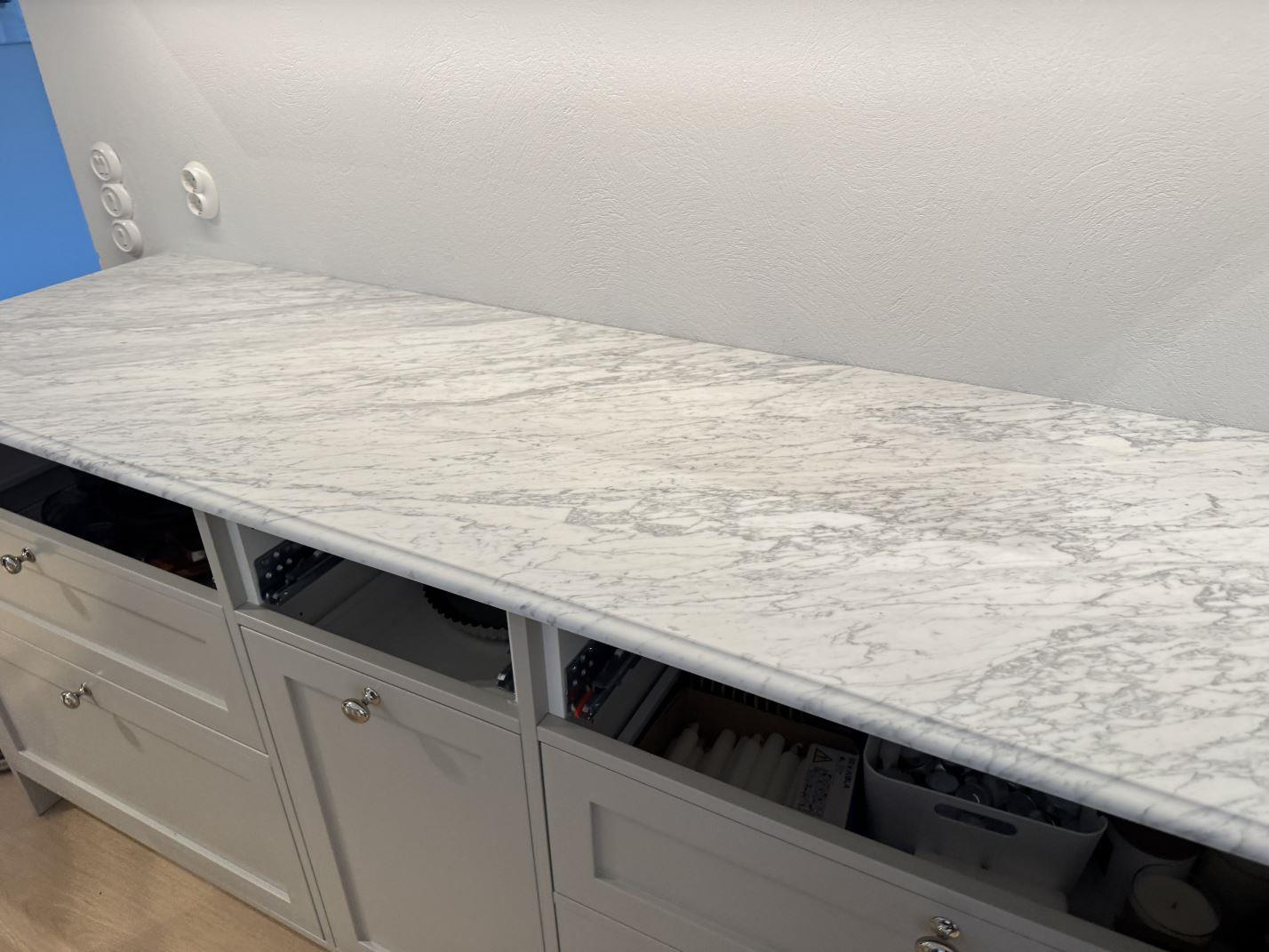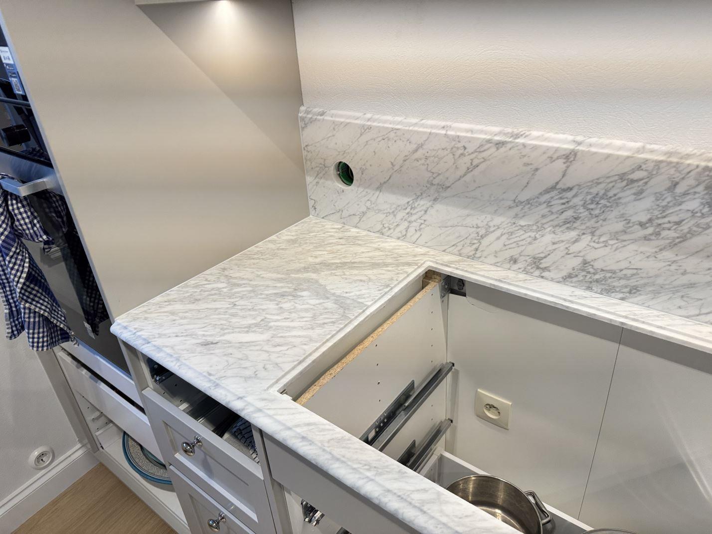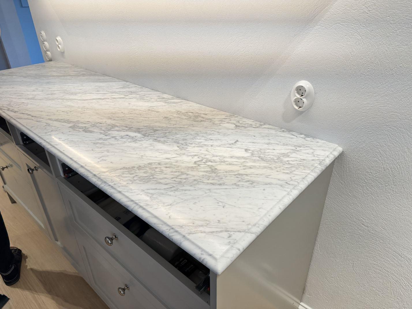Nytt projekt slutfört i Ystad. Montering. Mätning. Sten: Carrara C - 20mm Matt.