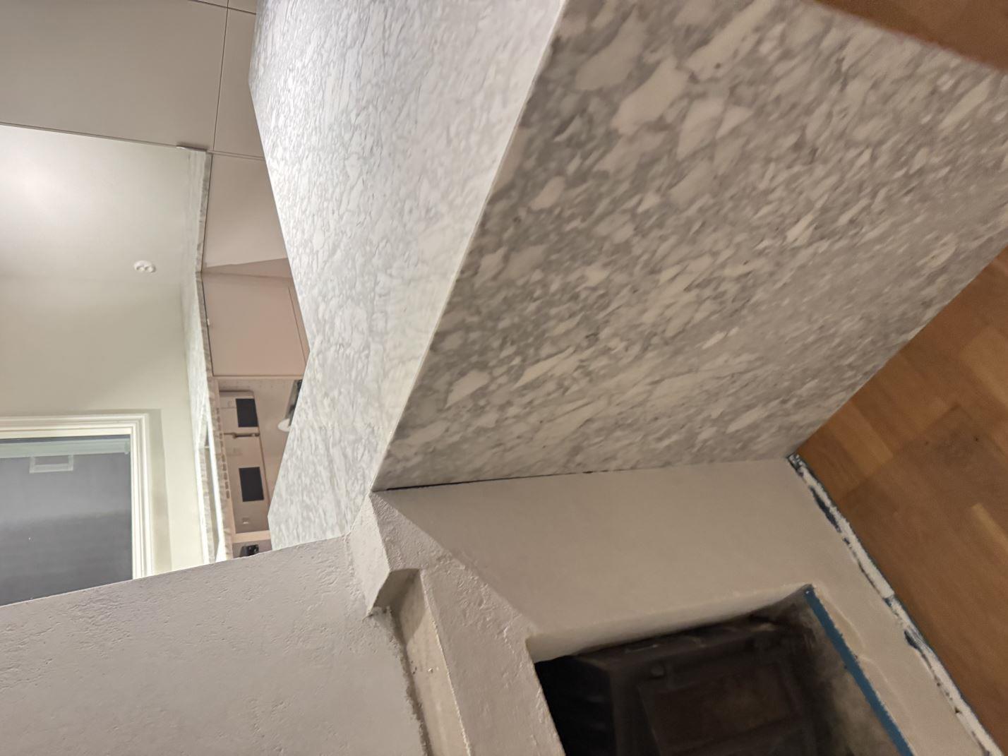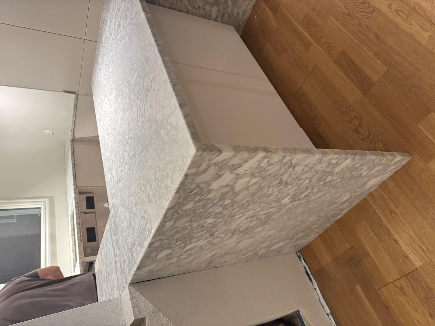 Nytt projekt slutfört i Stora höga . Montering. Mätning. Sten: Carrara CD - 30mm Matt.