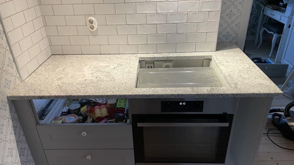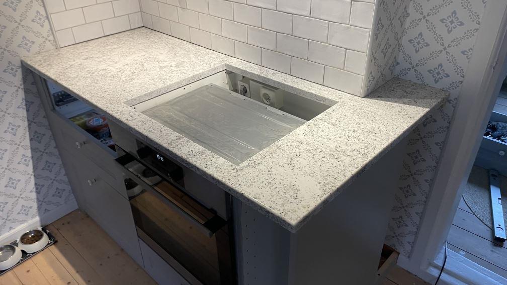Nytt projekt slutfört i Kungshamn . Montering. Mätning. Sten: Cotton White - 20mm Polerad,Cotton White - 30mm Polerad.