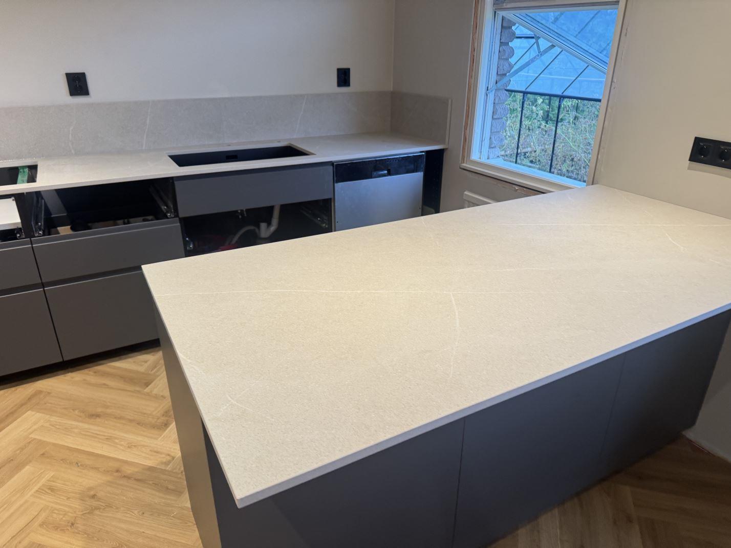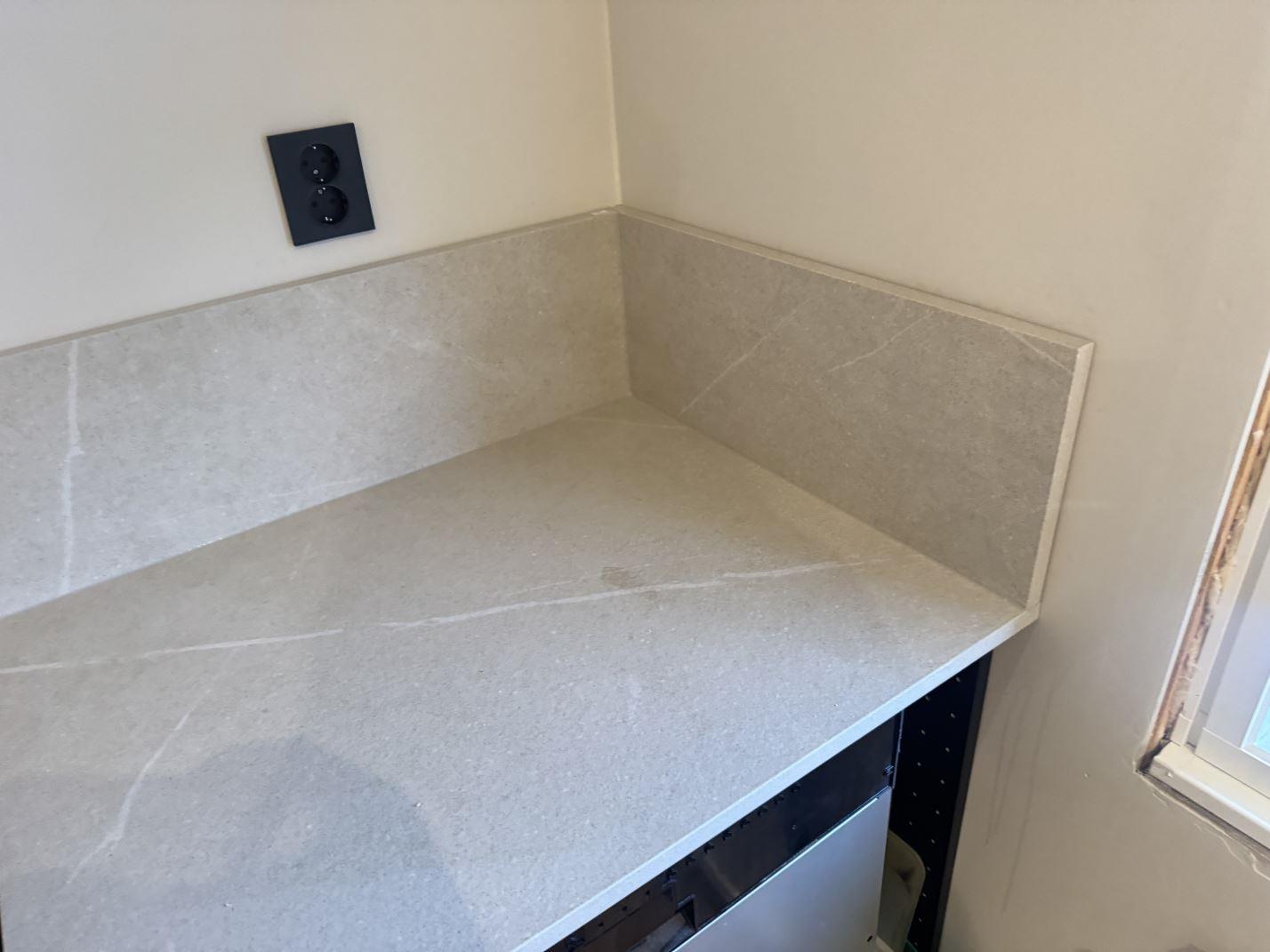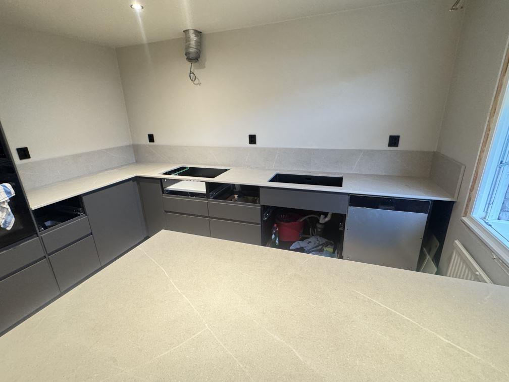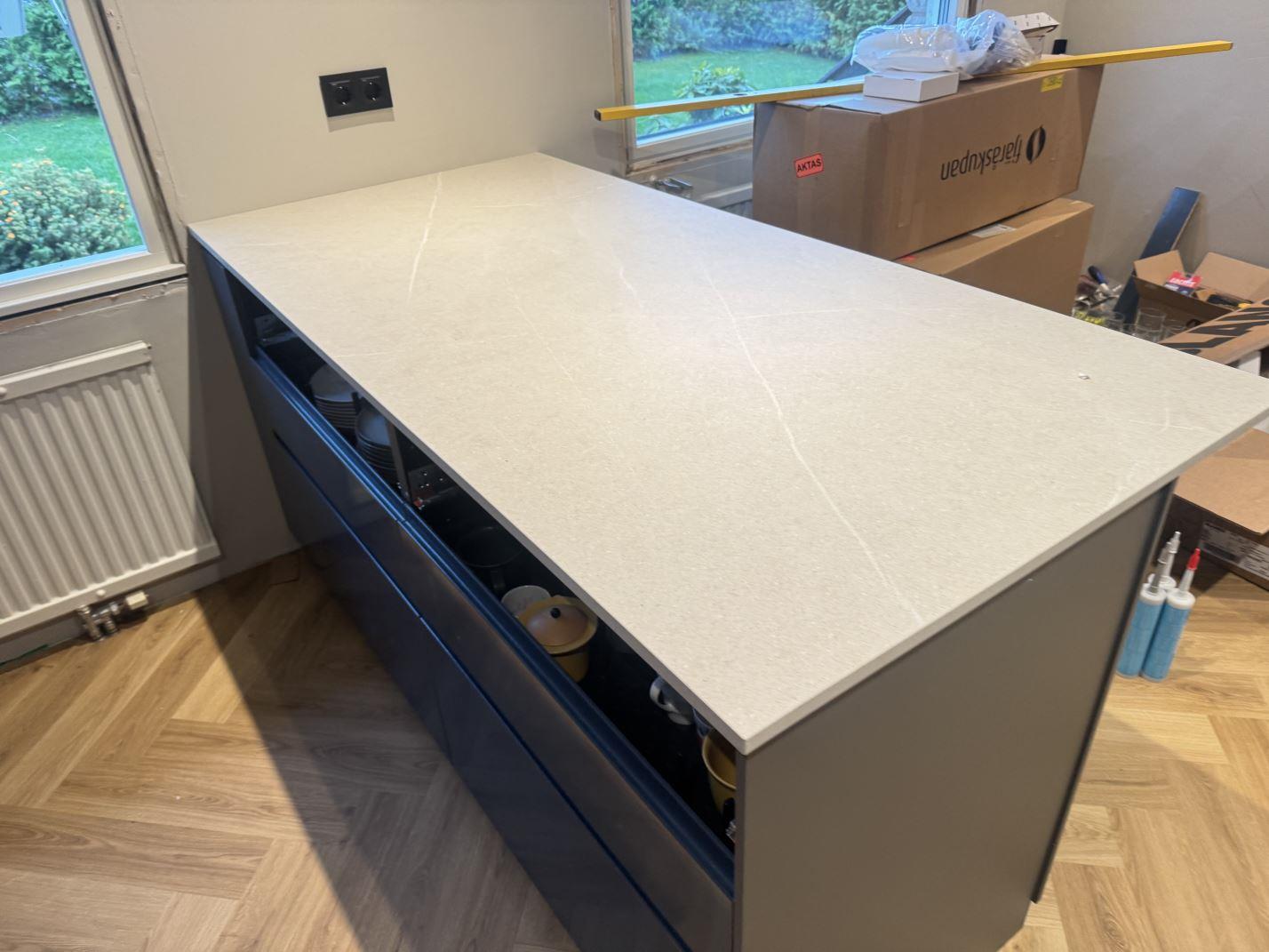 Nytt projekt slutfört i STENUNGSUND. Montering. Mätning. Sten: Dekton Adia - Matt 20mm.