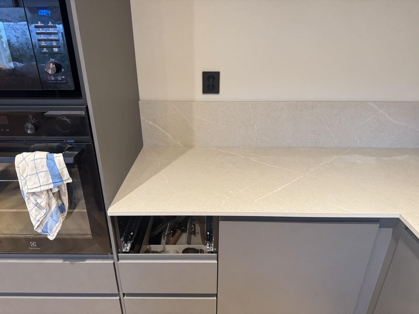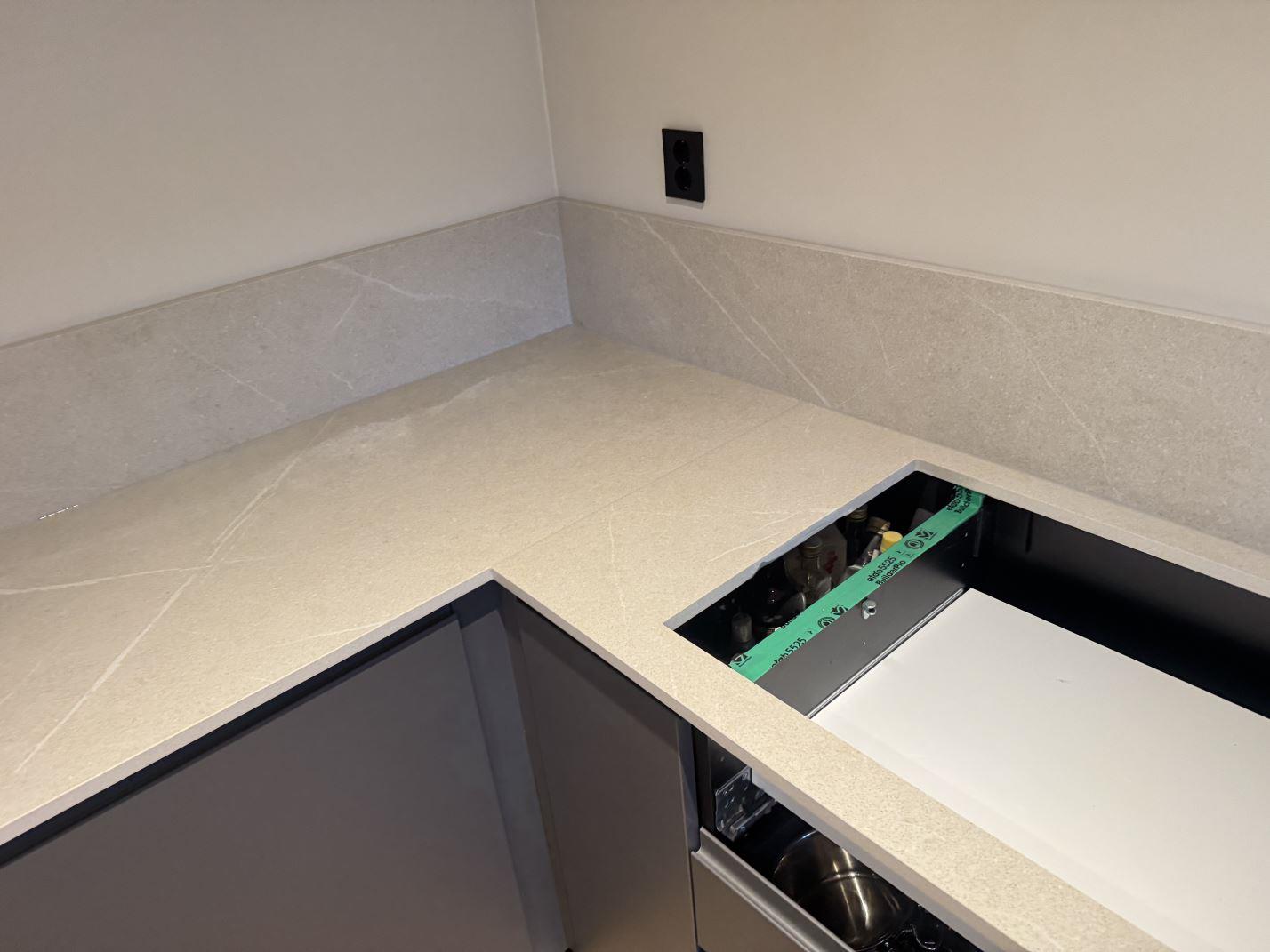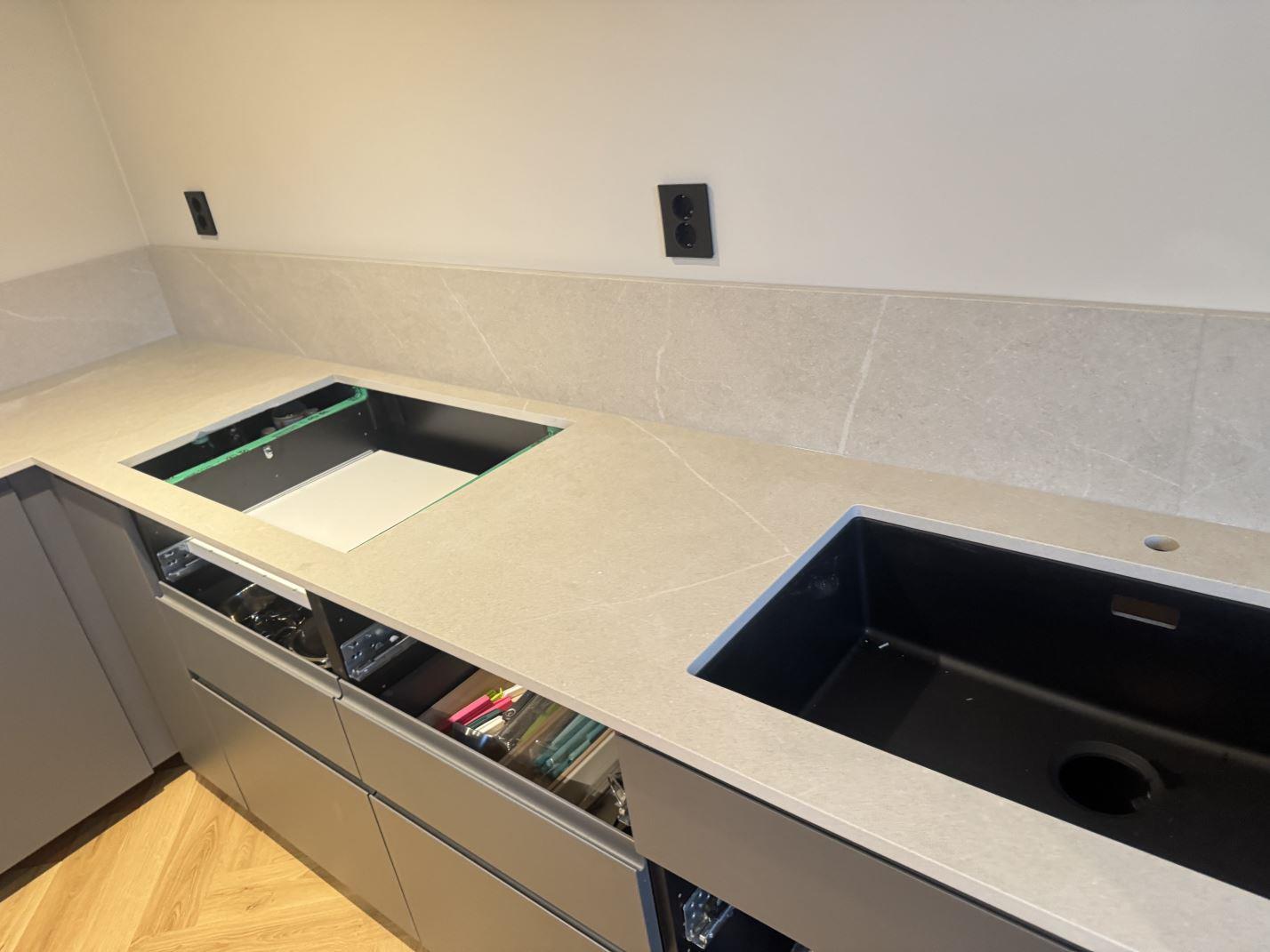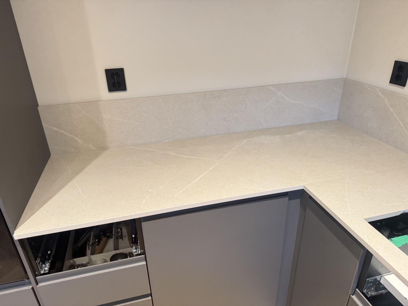 Nytt projekt slutfört i STENUNGSUND. Montering. Mätning. Sten: Dekton Adia - Matt 20mm.