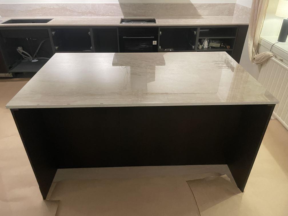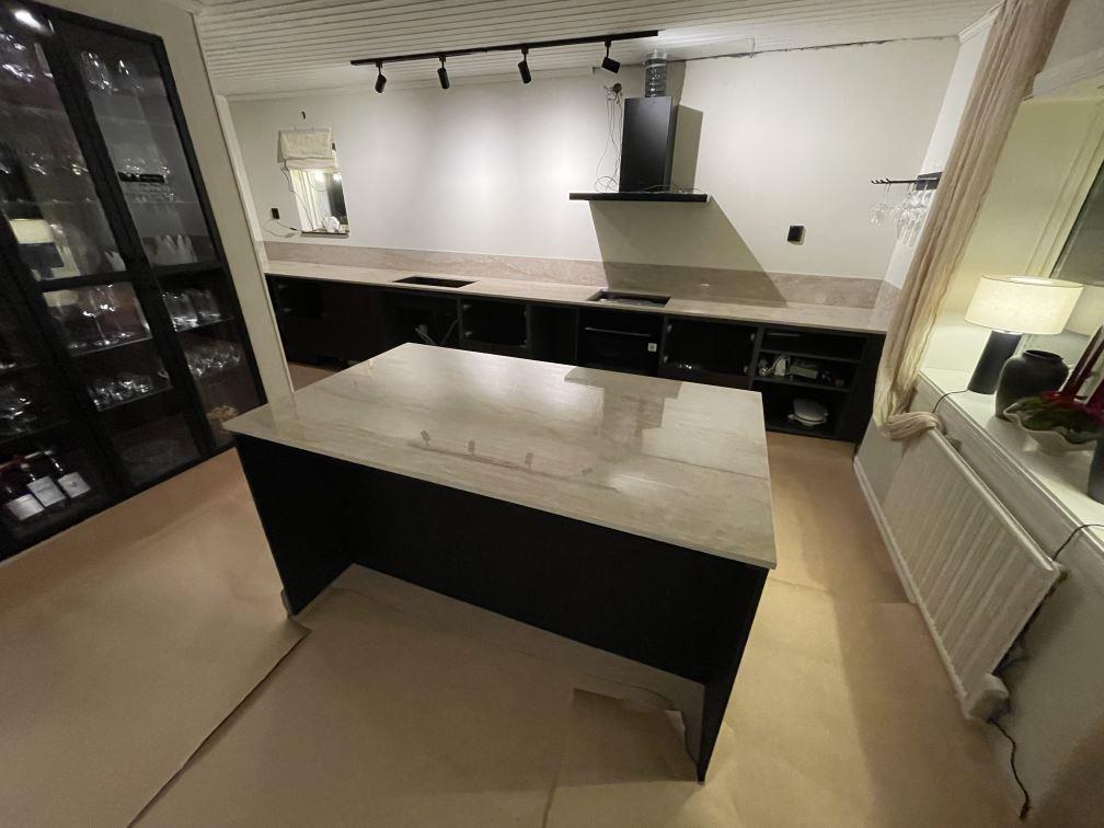 Nytt projekt slutfört i Flen. Montering. Mätning. Sten: Dekton Arga - 20mm Polerad,Dekton Arga - 8mm Polerad.