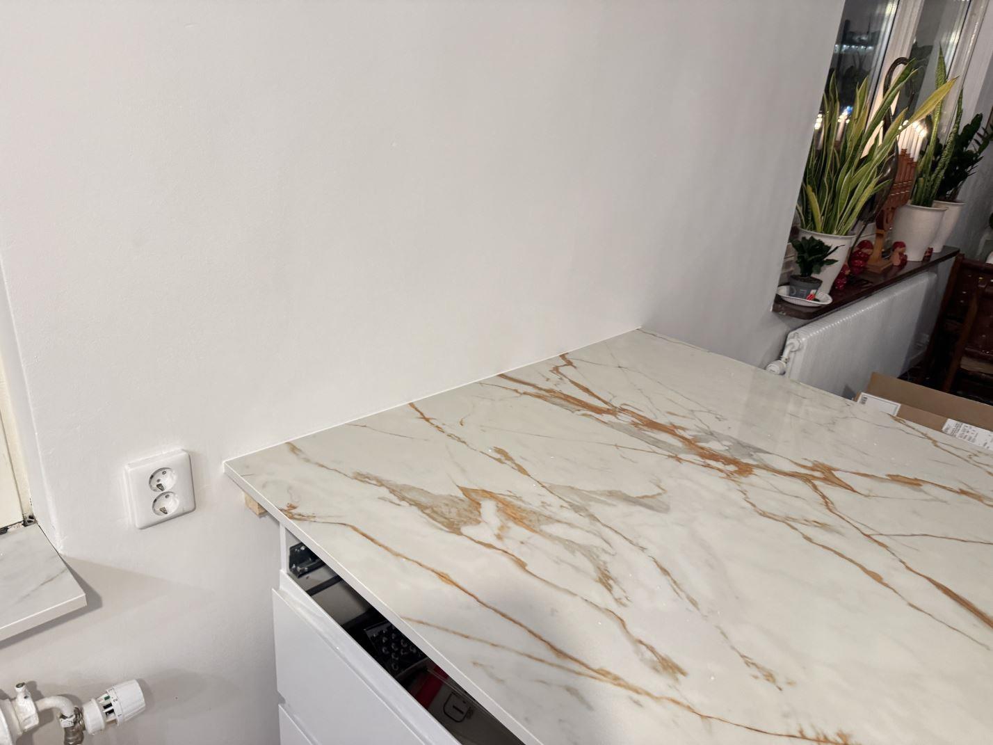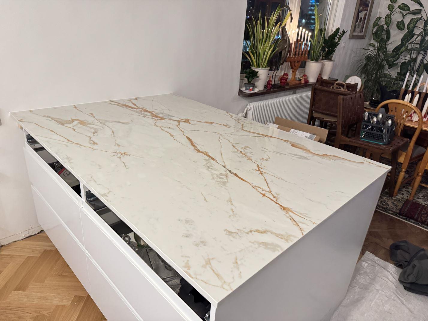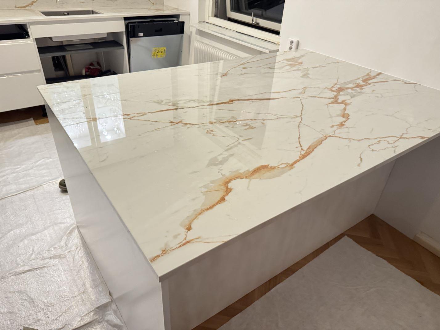 Nytt projekt slutfört i göteborg. Montering. Mätning. Sten: Dekton Awake - 8mm Polerad,Dekton Awake - 20mm Polerad.