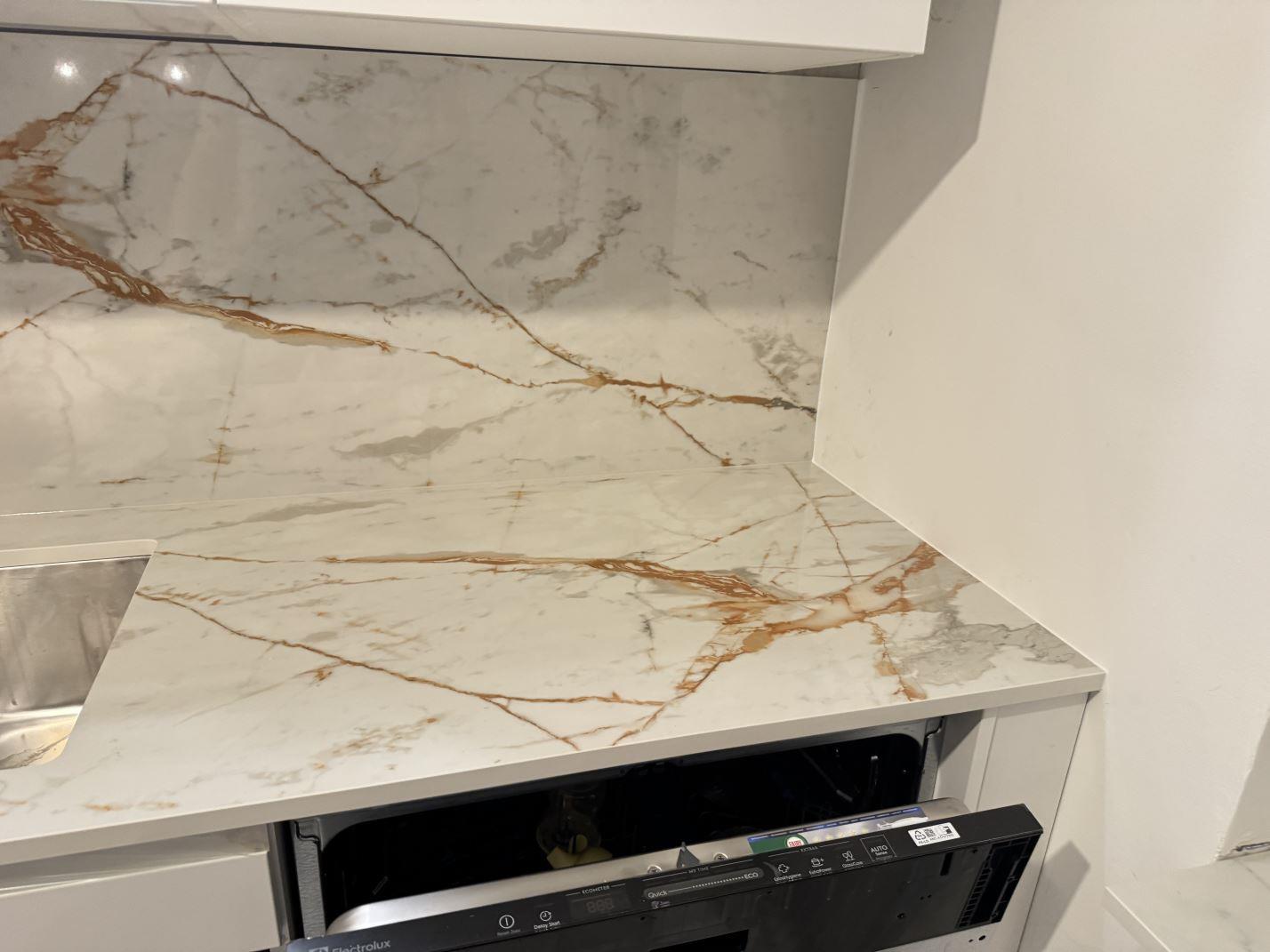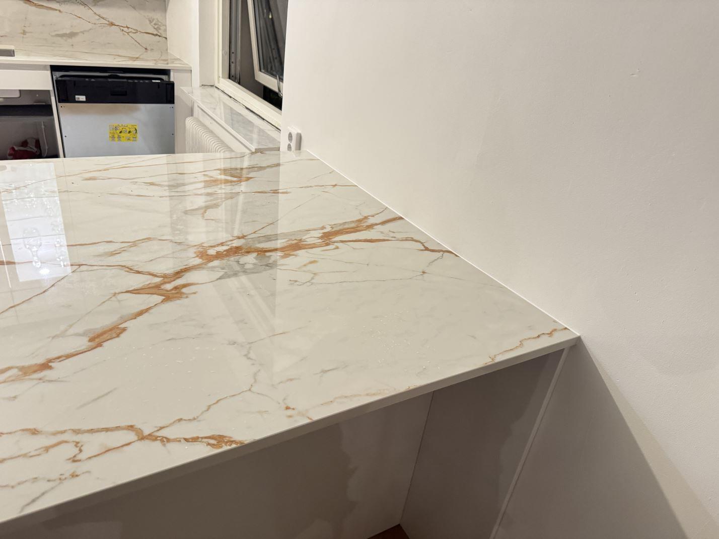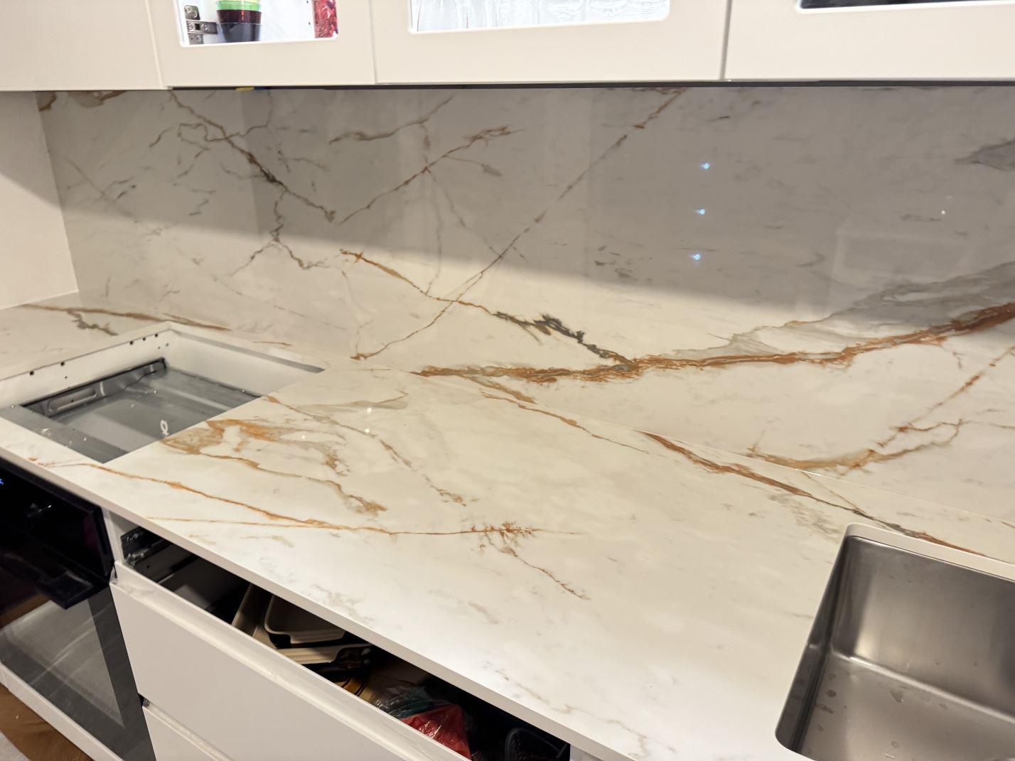Nytt projekt slutfört i göteborg. Montering. Mätning. Sten: Dekton Awake - 8mm Polerad,Dekton Awake - 20mm Polerad.
