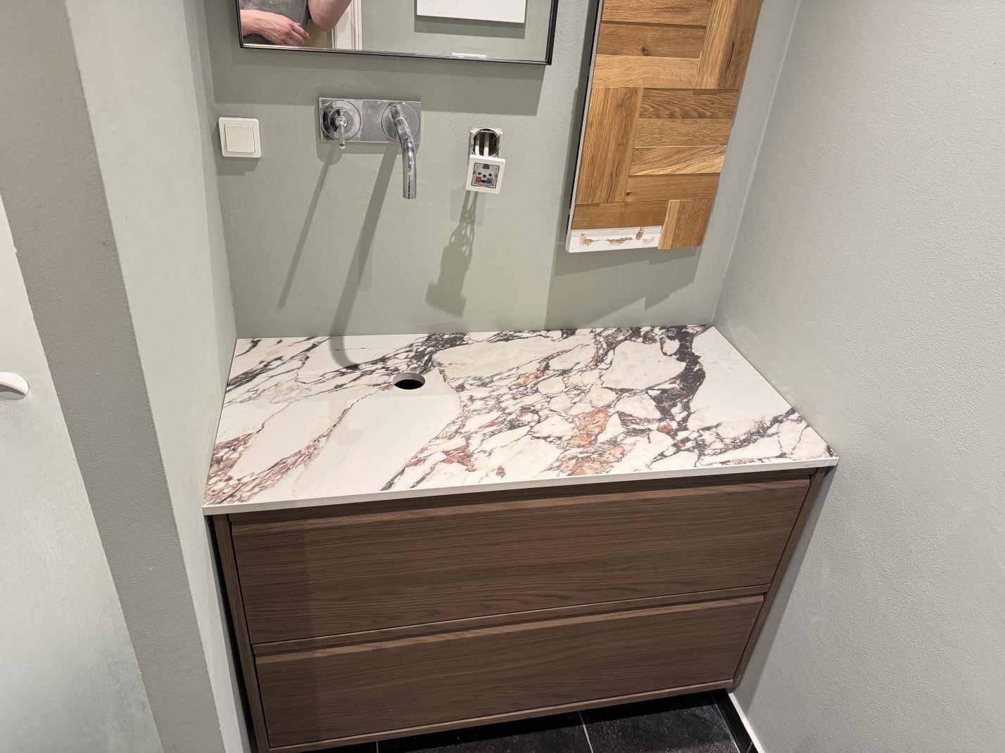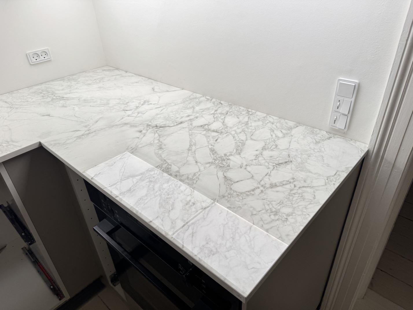 Nytt projekt slutfört i Frederiksberg. Montering. Mätning. Sten: Dekton Bergen - 8mm Polerad,Dekton Bergen - 20mm Polerad,Nuovo Corso Arabescato Viola - Polerad 20mm.