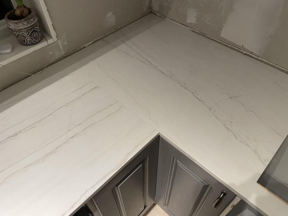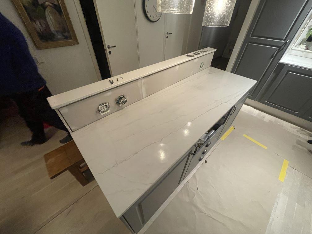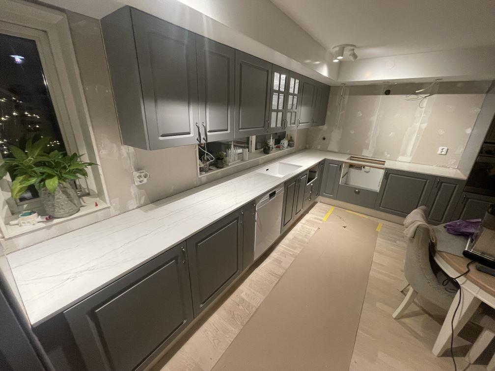 Nytt projekt slutfört i Nyköping. Montering. Mätning. Sten: Dekton Limbo - 20mm Polerad.