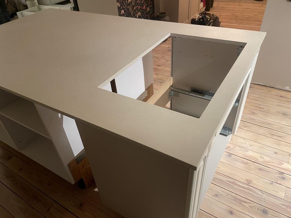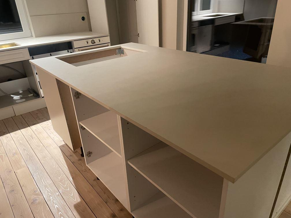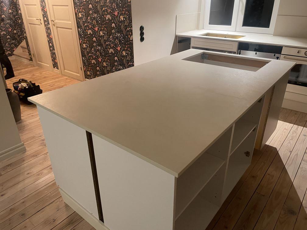 Nytt projekt slutfört i Immeln. Montering. Mätning. Sten: Dekton Nacre Velvet - Matt 20mm,Dekton Nacre Velvet - Matt 8mm.