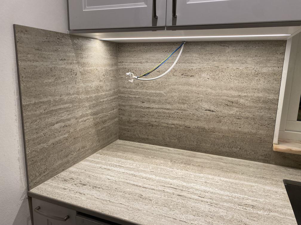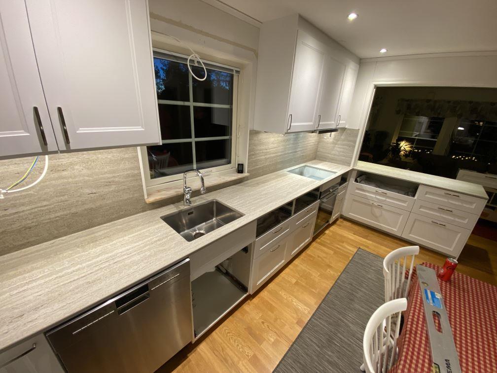 Nytt projekt slutfört i UPPLANDS VÄSBY. Montering. Mätning. Sten: Dekton Nebu - Matt 20mm,Dekton Nebu - Matt 8mm.