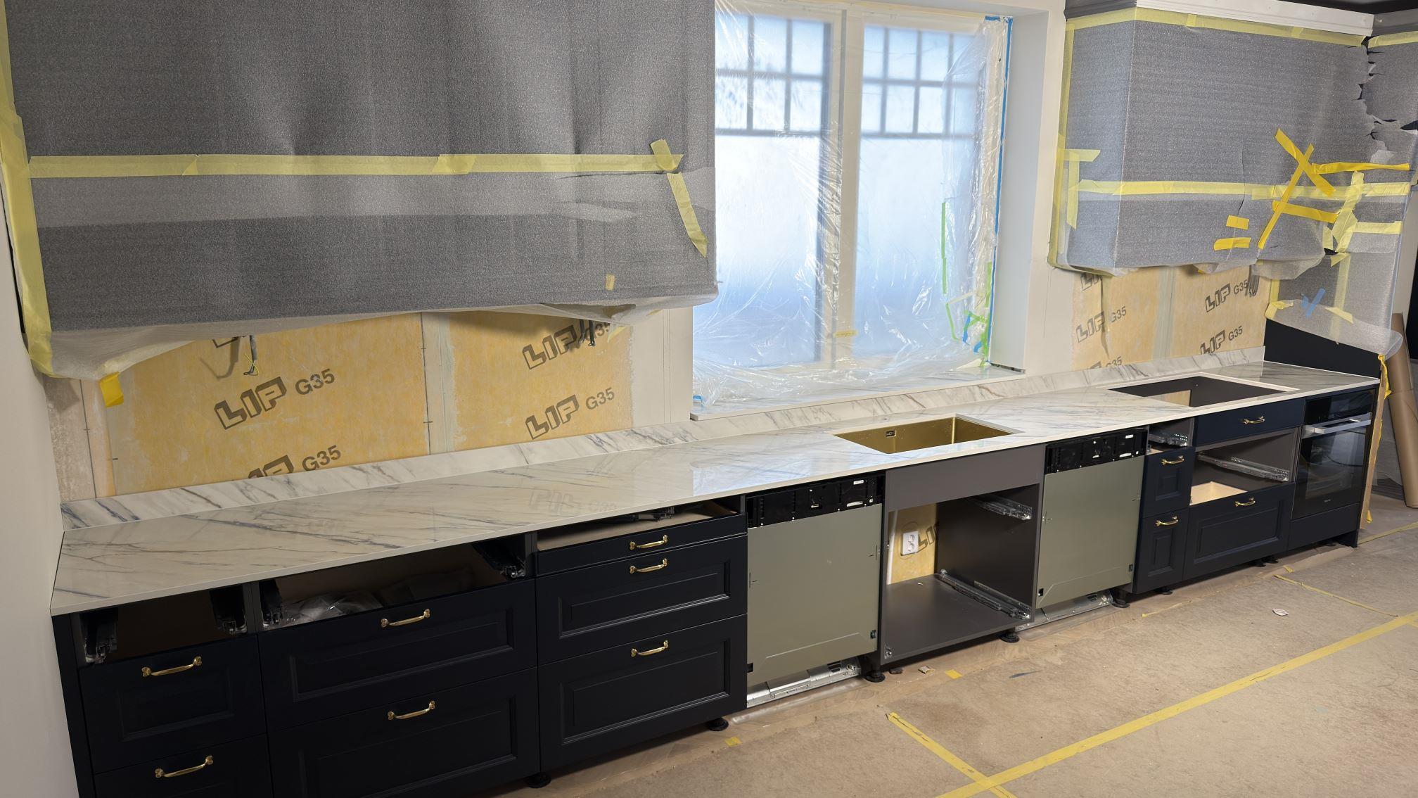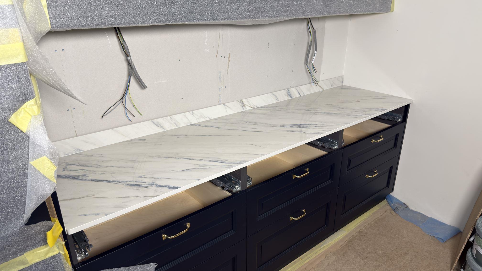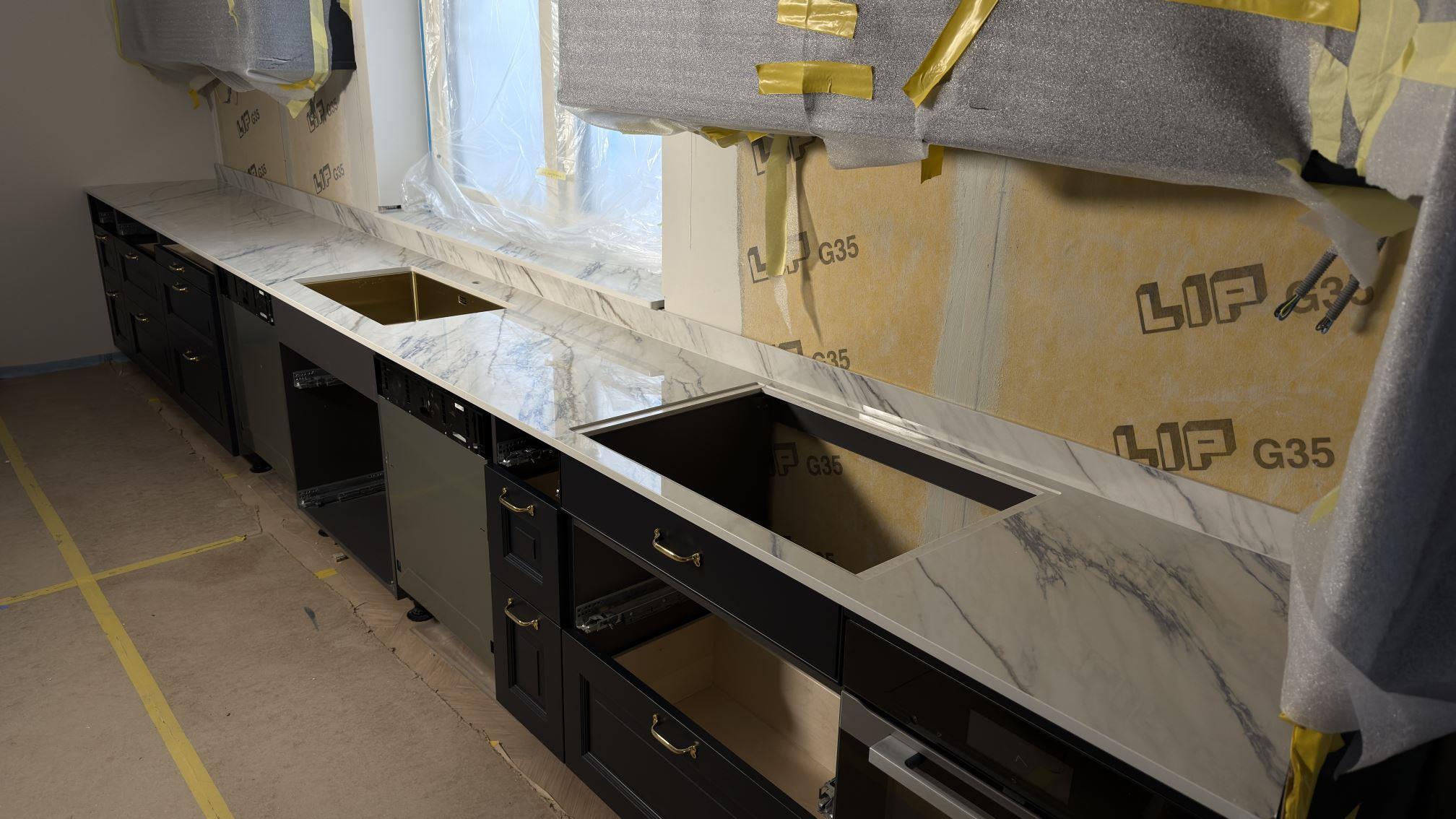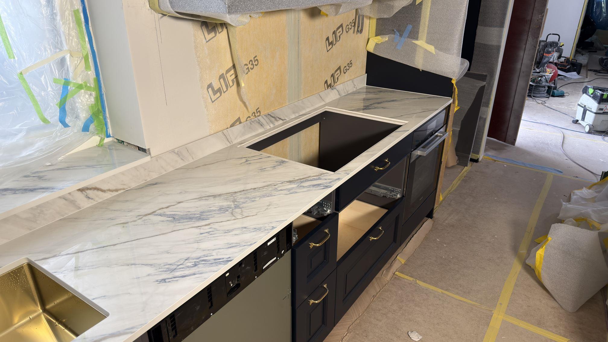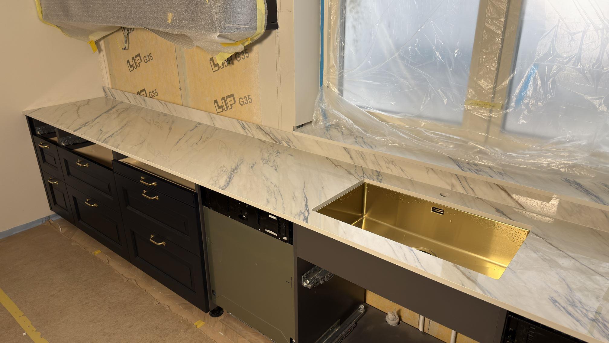 Nytt projekt slutfört i Åkersberga. Montering. Mätning. Sten: Dekton Trance - Polerad 8mm,Dekton Trance - Polerad 20mm.