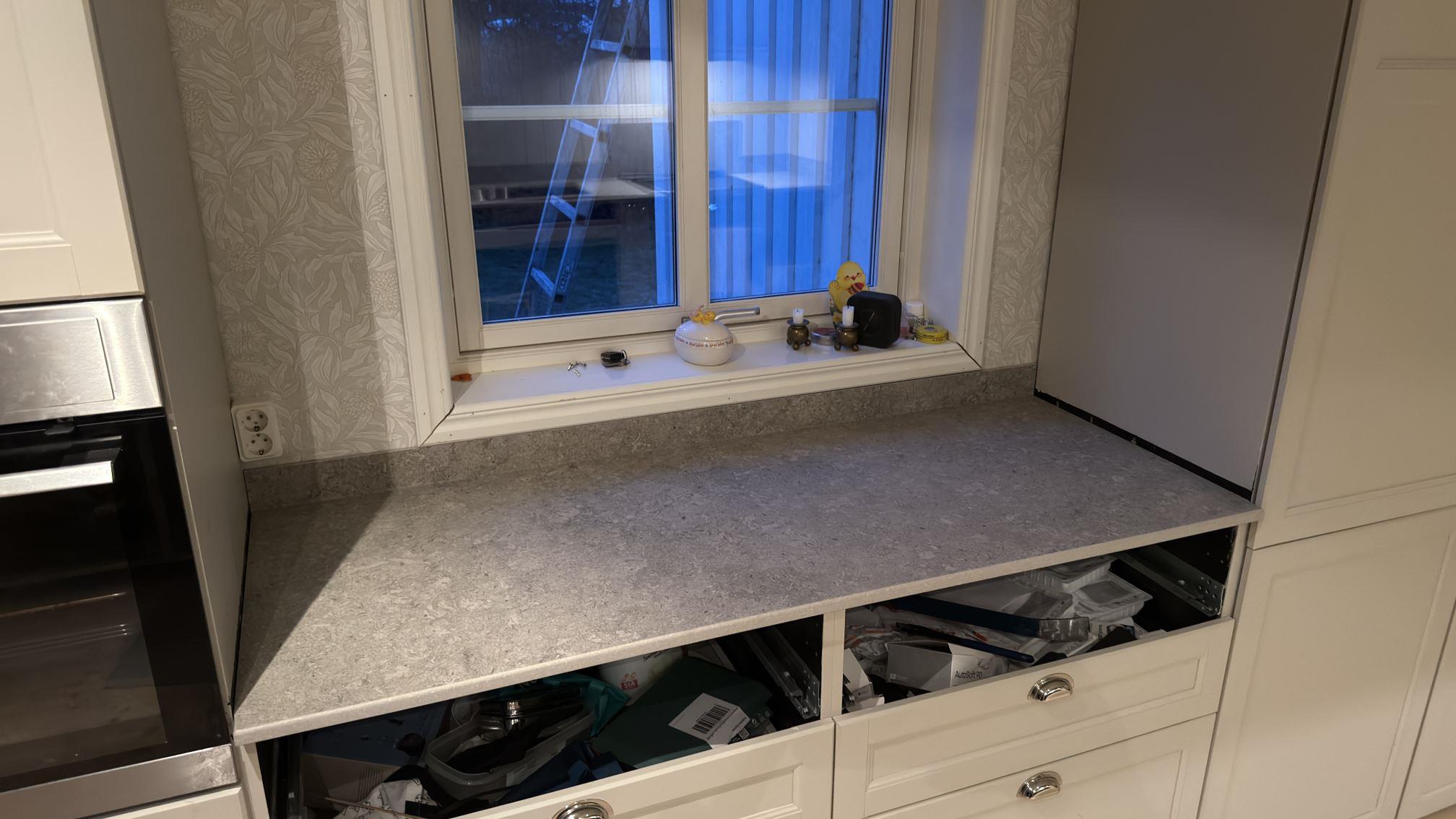 Nytt projekt slutfört i Charlottenberg. Leverans. Sten: Dekton VK03 Grigio - 20mm Matt,Dekton VK03 Grigio - 8mm Matt.