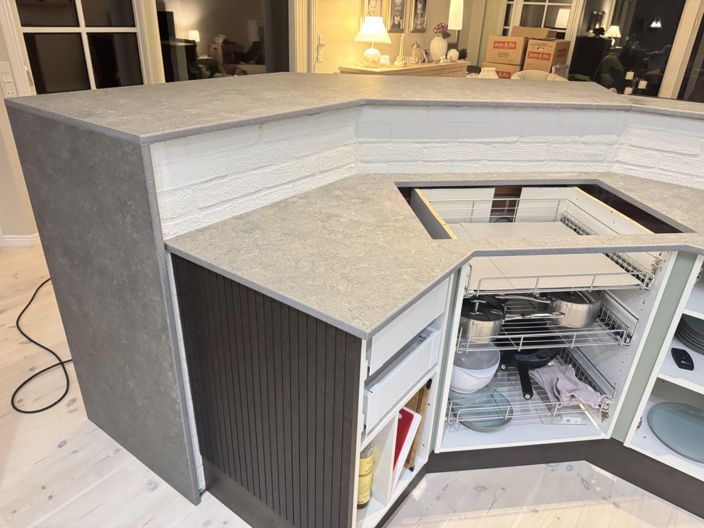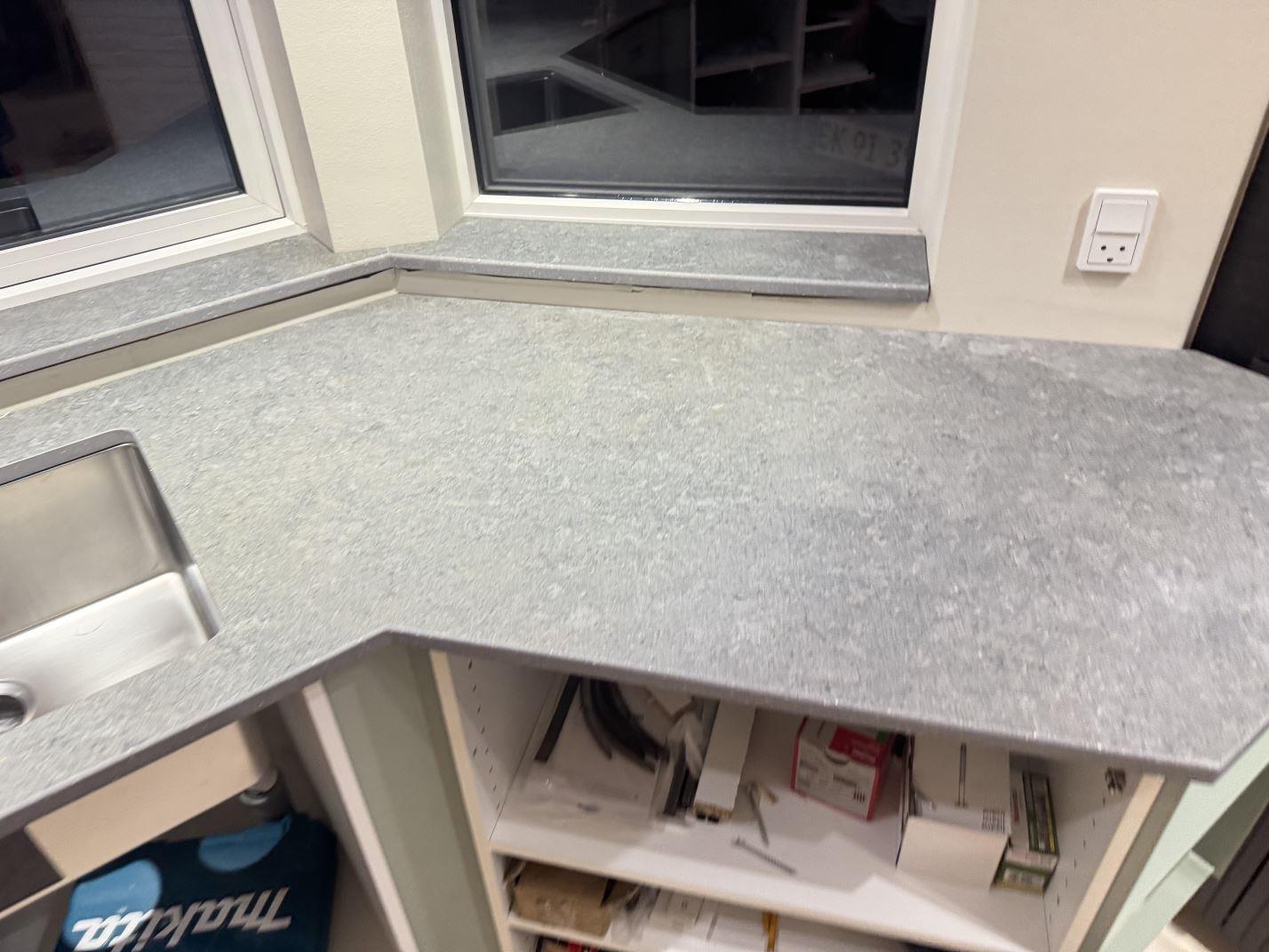 Nytt projekt slutfört i Ølsted. Montering. Mätning. Sten: Dekton Vk04 Grafite - 20mm Matt.
