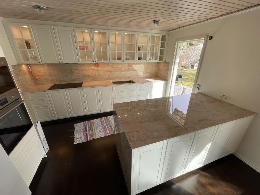Nytt projekt slutfört i Huddinge. Montering. Mätning. Sten: Makrana - Polerad 20mm,Makrana - Polerad 12mm.
