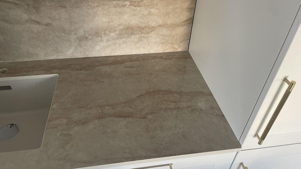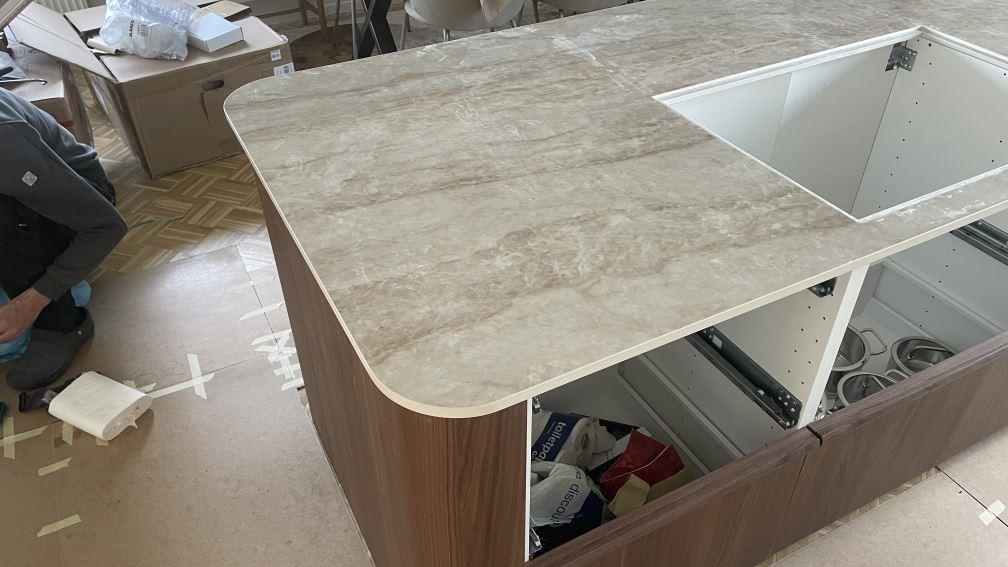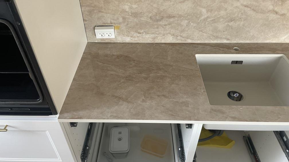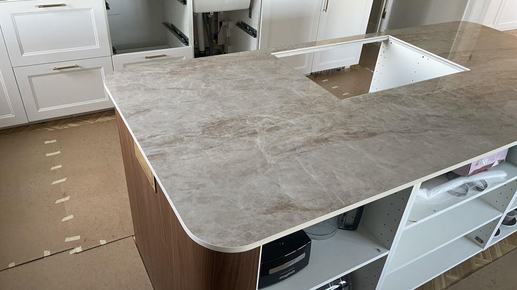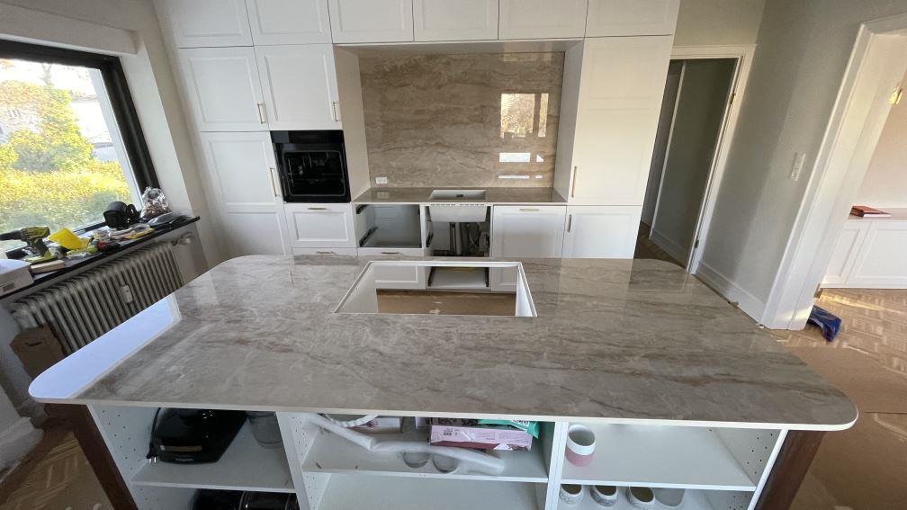 Nytt projekt slutfört i Kongens Lyngby. Montering. Mätning. Sten: Makrana - Polerad 20mm,Makrana - Polerad 12mm.