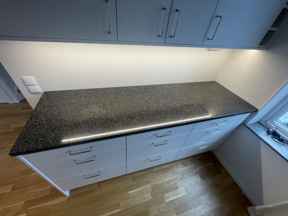 Nytt projekt slutfört i Hjärup. Montering. Mätning. Sten: Nero Africa - 30mm Polerad.