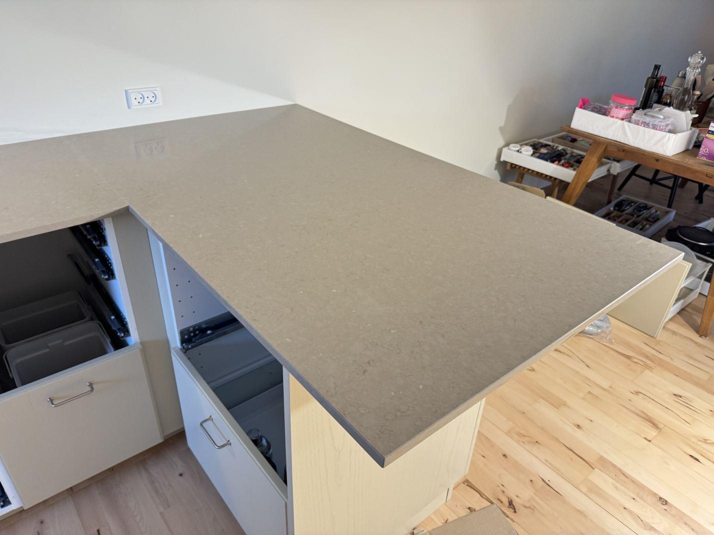 Nytt projekt slutfört i Ganløse. Montering. Mätning. Sten: Silestone Coral Clay - 20mm Polerad.