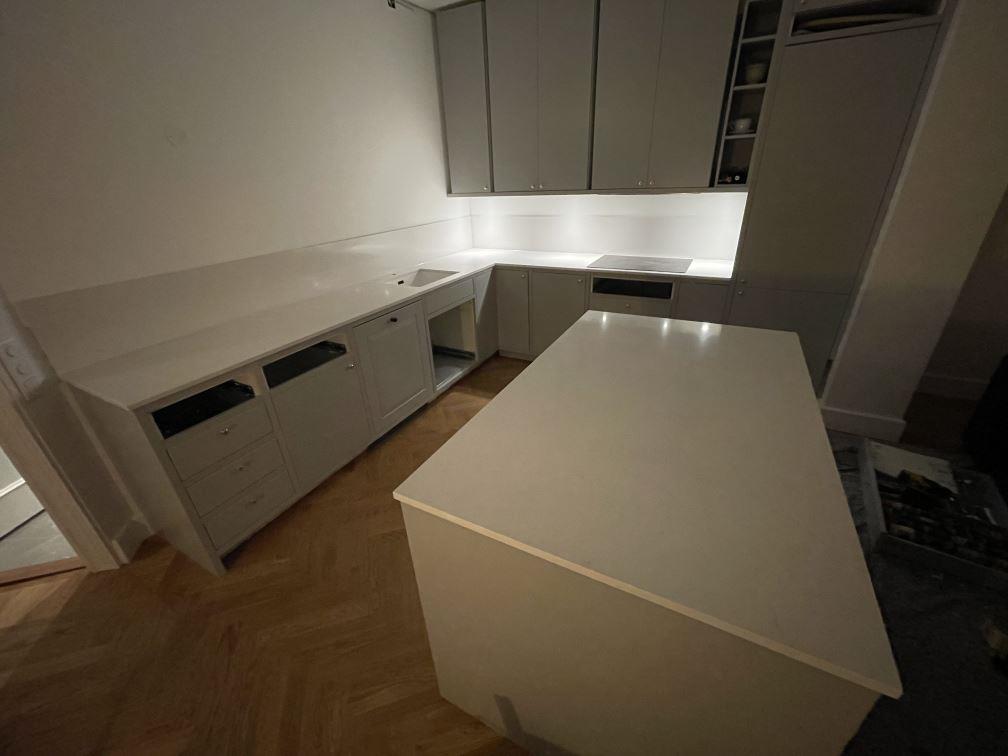 Nytt projekt slutfört i Stockholm. Montering. Mätning. Sten: Silestone Eternal Statuario - 12mm Polerad,Silestone Eternal Statuario - 20mm Polerad.