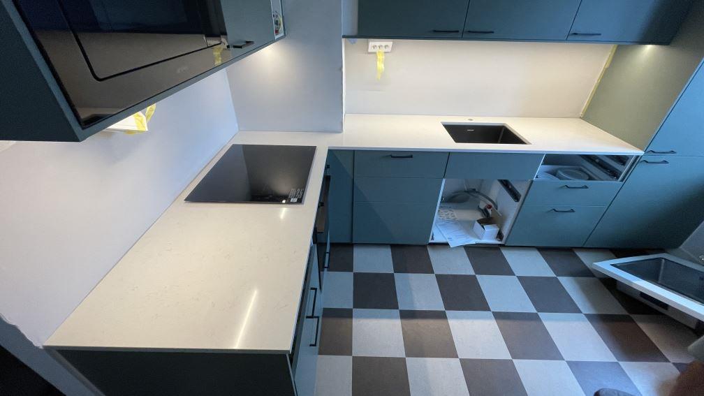 Nytt projekt slutfört i Malmö. Montering. Mätning. Sten: Silestone Linen Cream - Polerad 20mm.