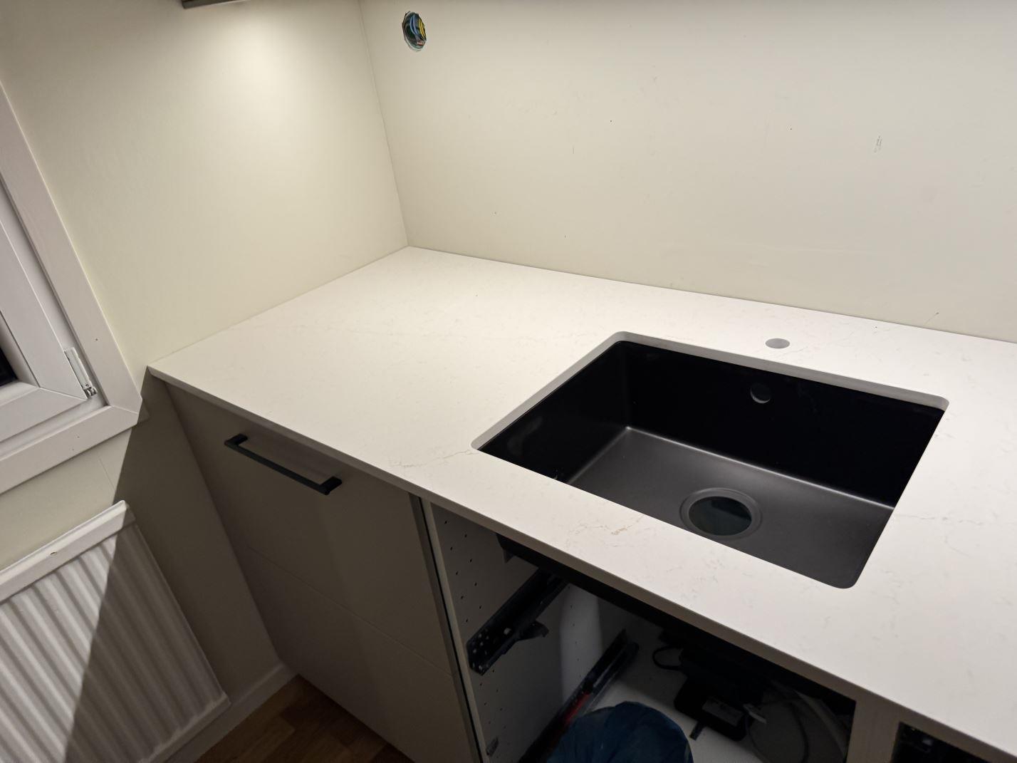 Nytt projekt slutfört i Kävlinge. Montering. Mätning. Sten: Silestone Persian White - Polerad 20mm.