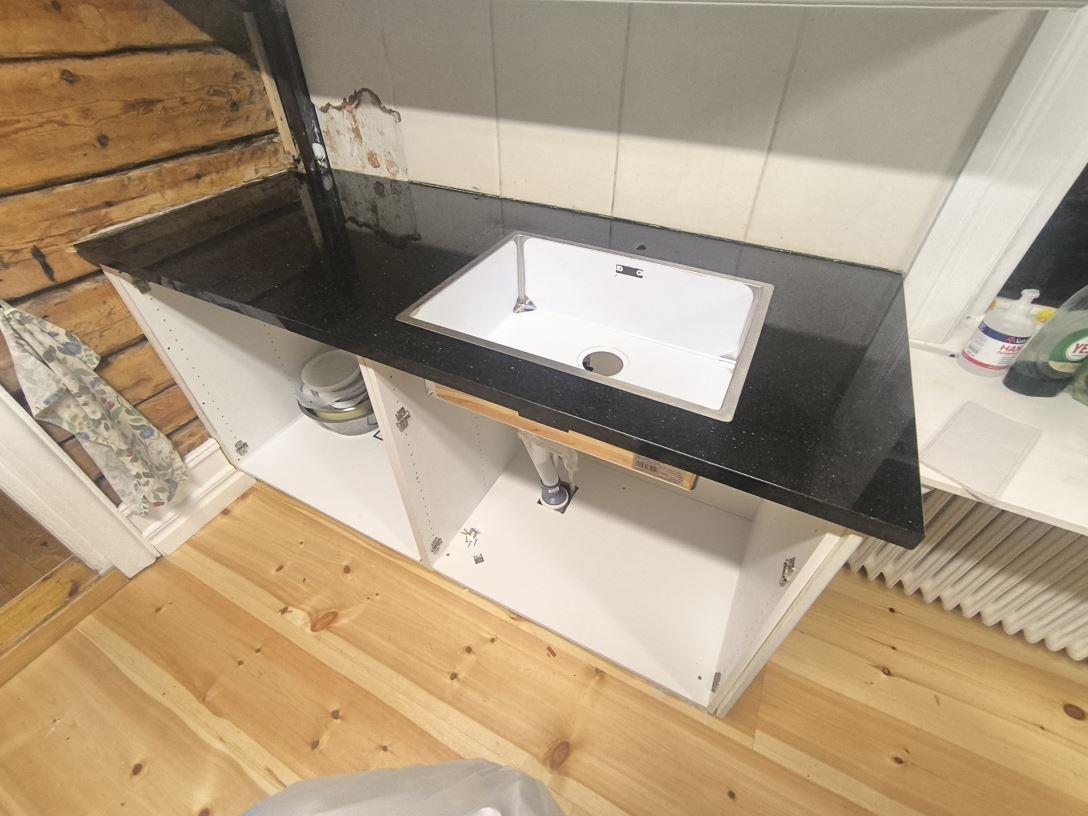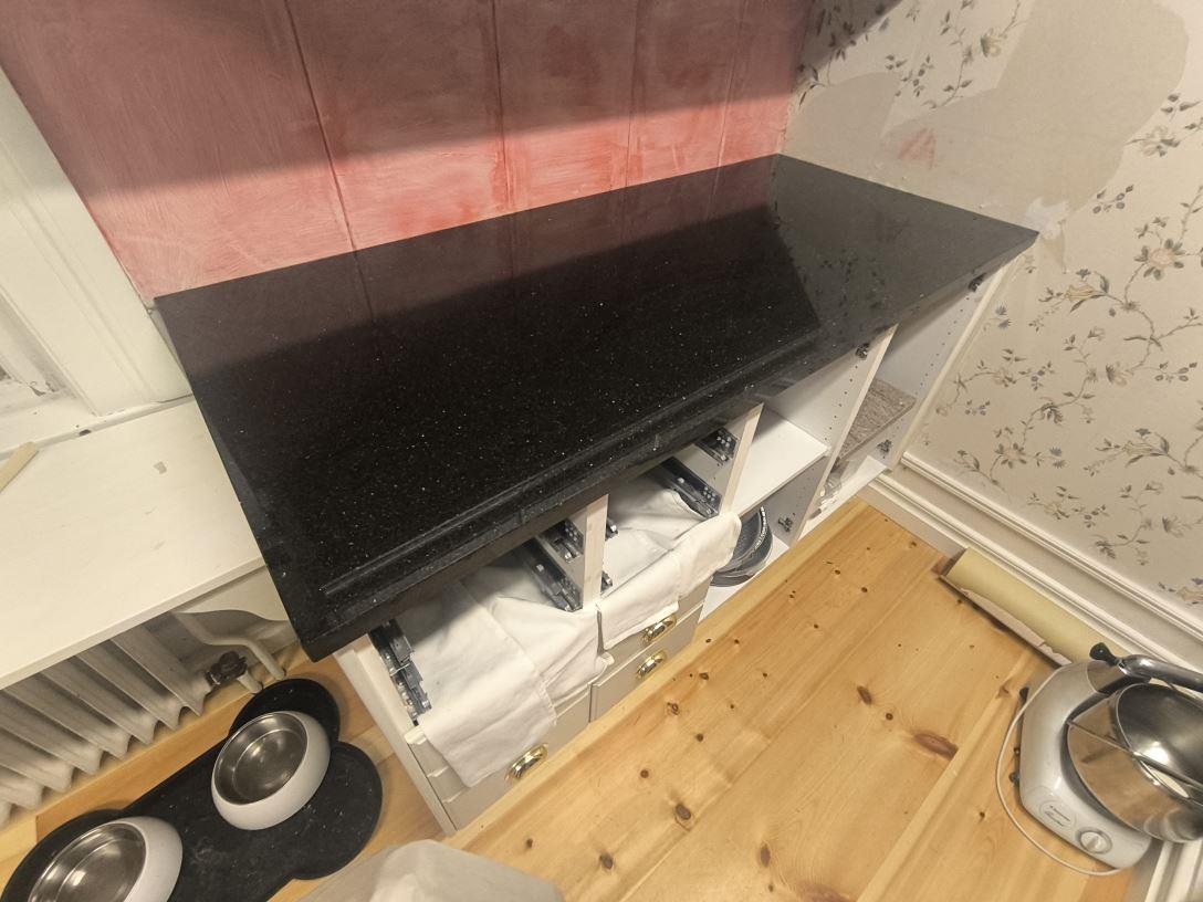 Nytt projekt slutfört i Grangärde. Montering. Mätning. Sten: Star Galaxy - 30mm Polerad.