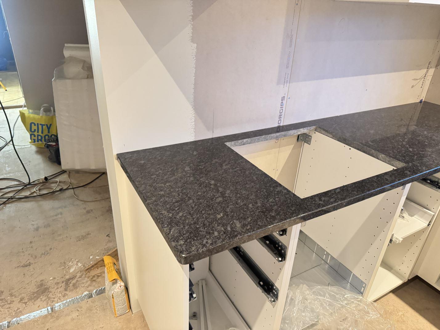 Nytt projekt slutfört i Haverdal. Montering. Sten: Steel Grey - 30mm Polerad.