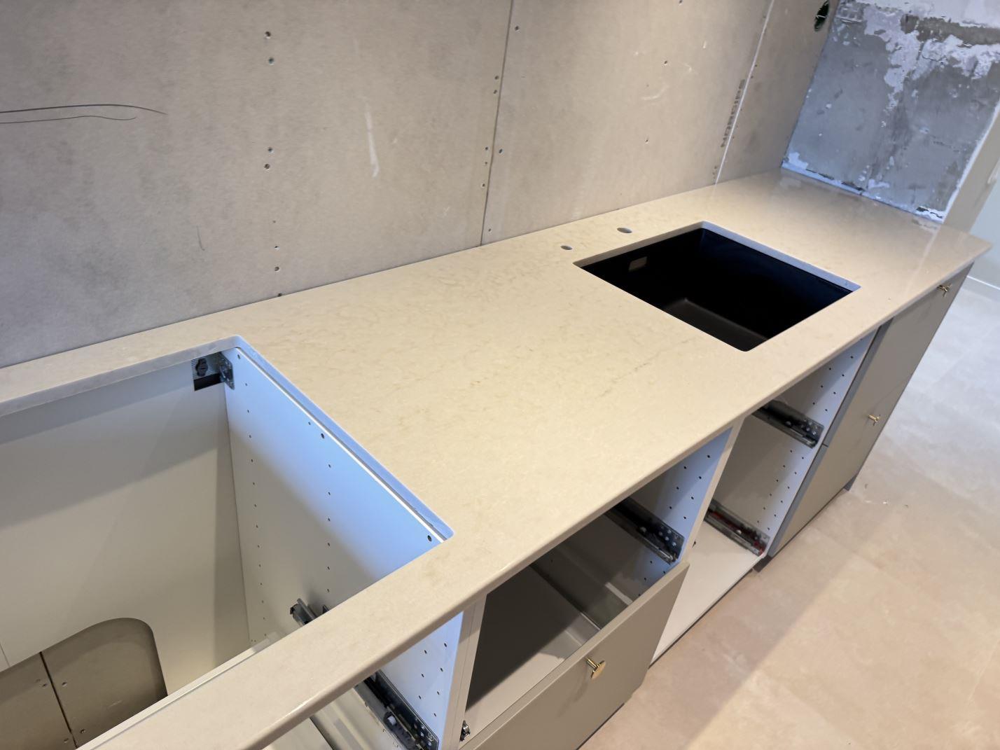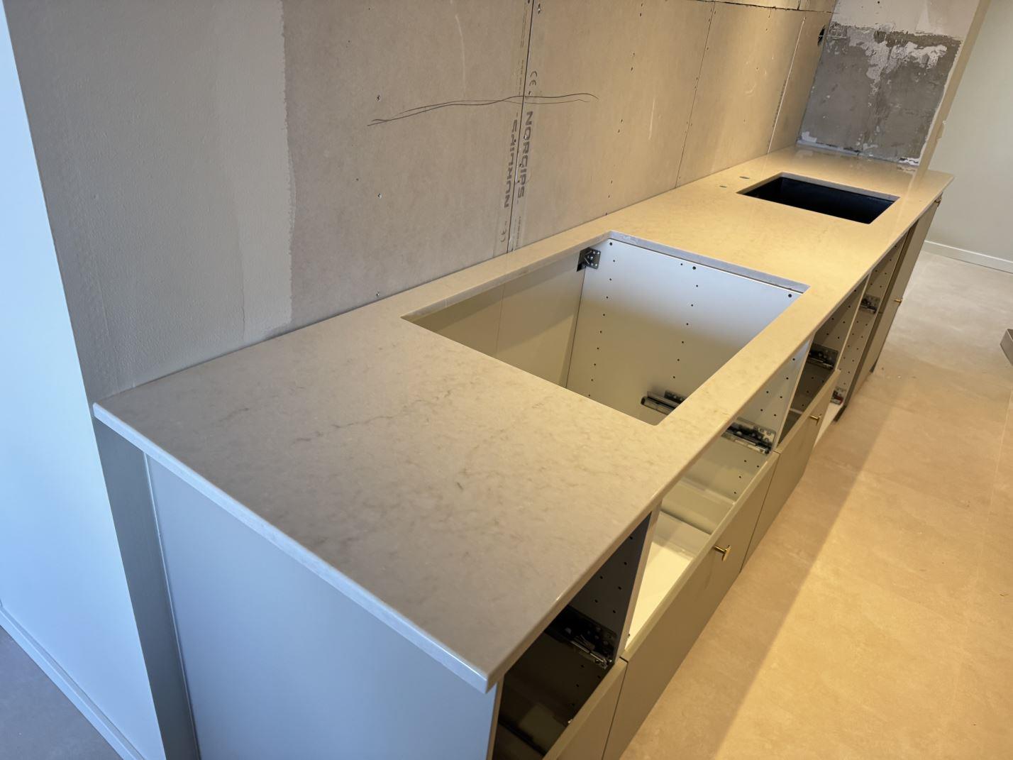 Nytt projekt slutfört i MALMÖ. Montering. Mätning. Sten: Taj Mahal Gold - 20mm Polerad.