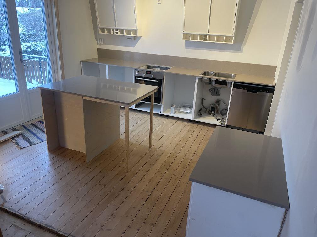 Nytt projekt slutfört i Karlstad. Montering. Sten: Technistone Noble Troya - 20mm Polerad.