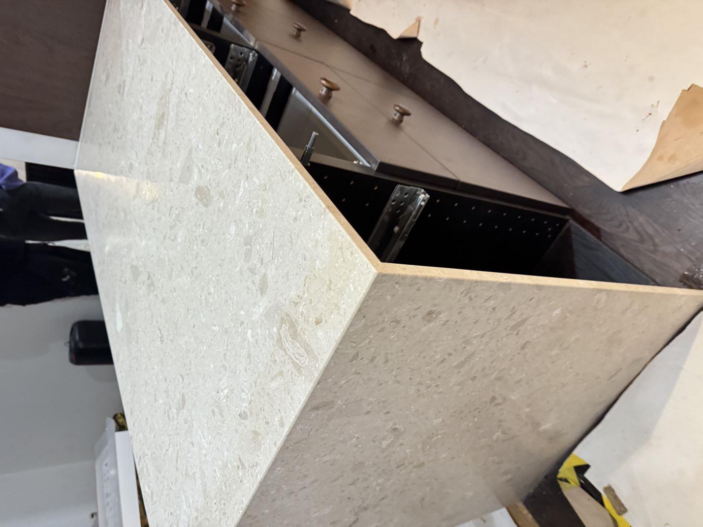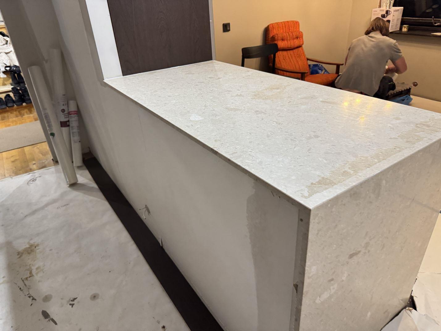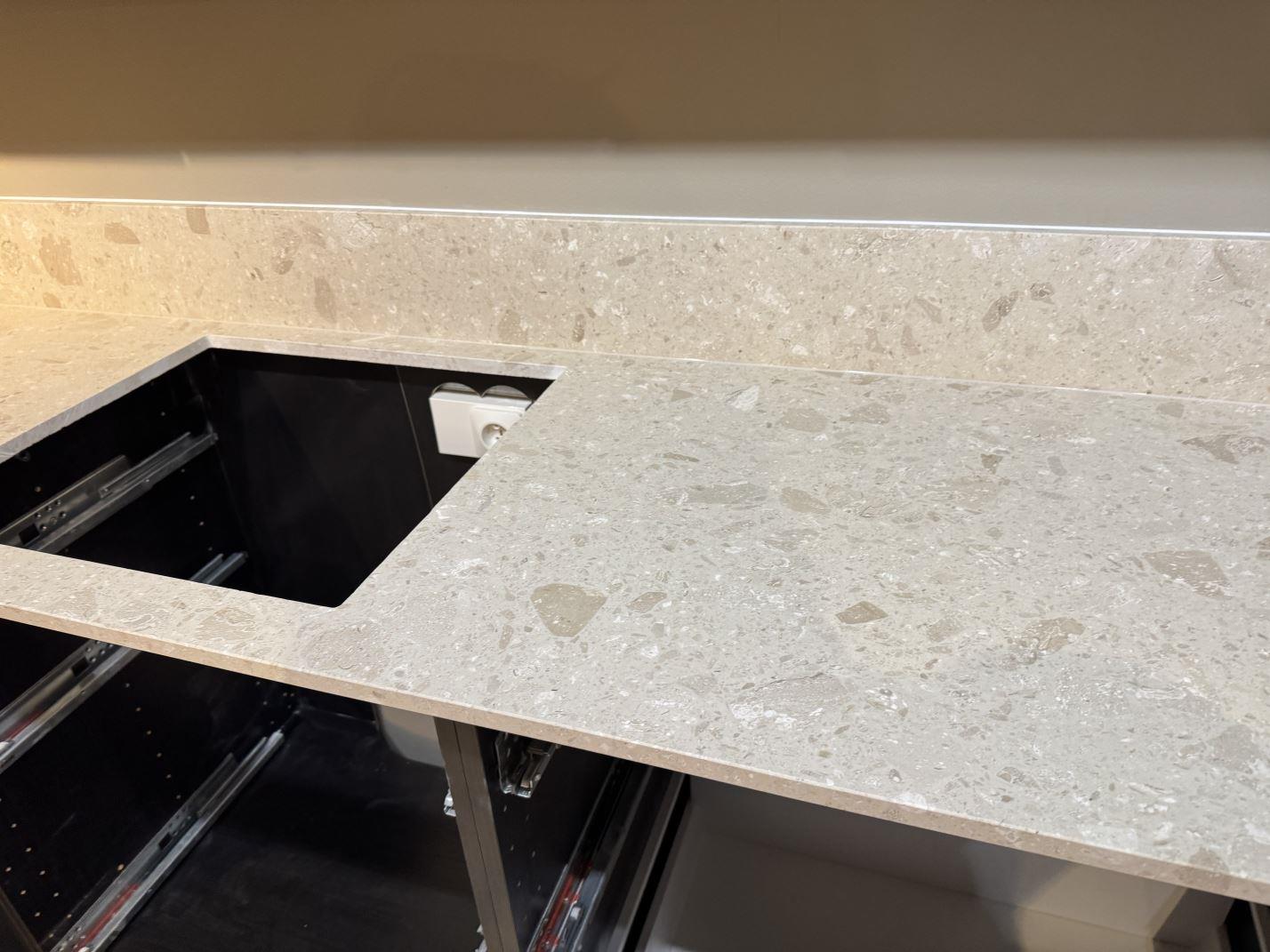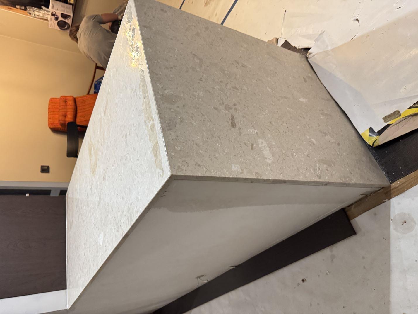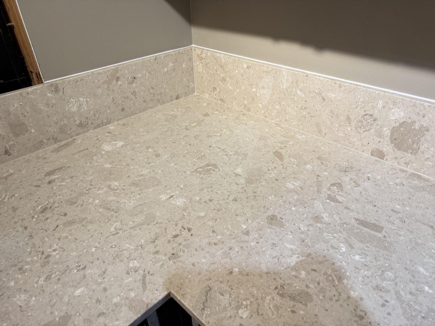 Nytt projekt slutfört i Sjöbo. Montering. Mätning. Sten: Terrazzo Perlato Royal - 20mm Matt.