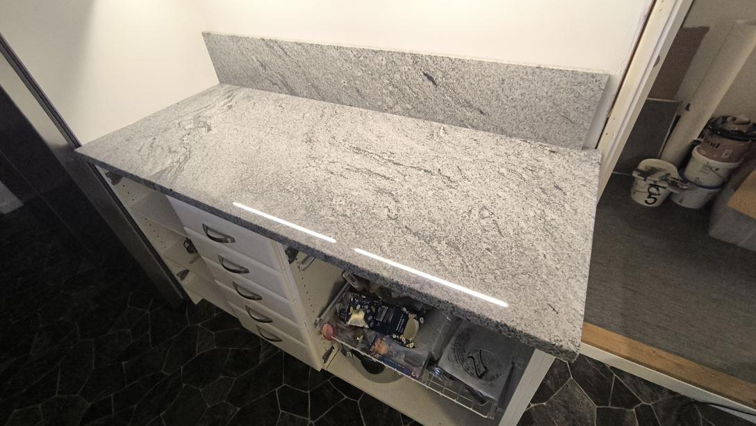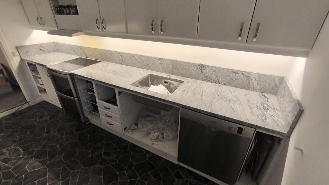 Nytt projekt slutfört i Ekolsund. Montering. Mätning. Sten: Viscont White - 30mm Polerad,Viscont White - 20mm Polerad.