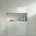 Dekton Helena X-Gloss är färgsatt med genomskinligt vita och gråa nyanser och är inspirerad av naturstenen Onyx.