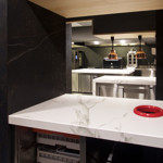 Dekton Kelya har ett utseende inspirerad av natursten med mörka skuggor. Baserad på en svart marmor med mjuka ådror lyfts den fram på ett varmt sätt..